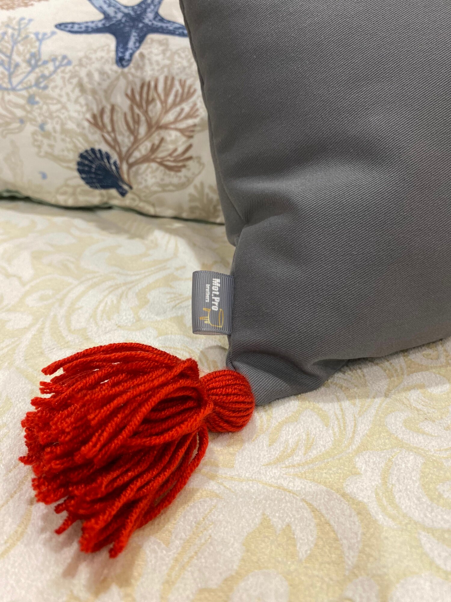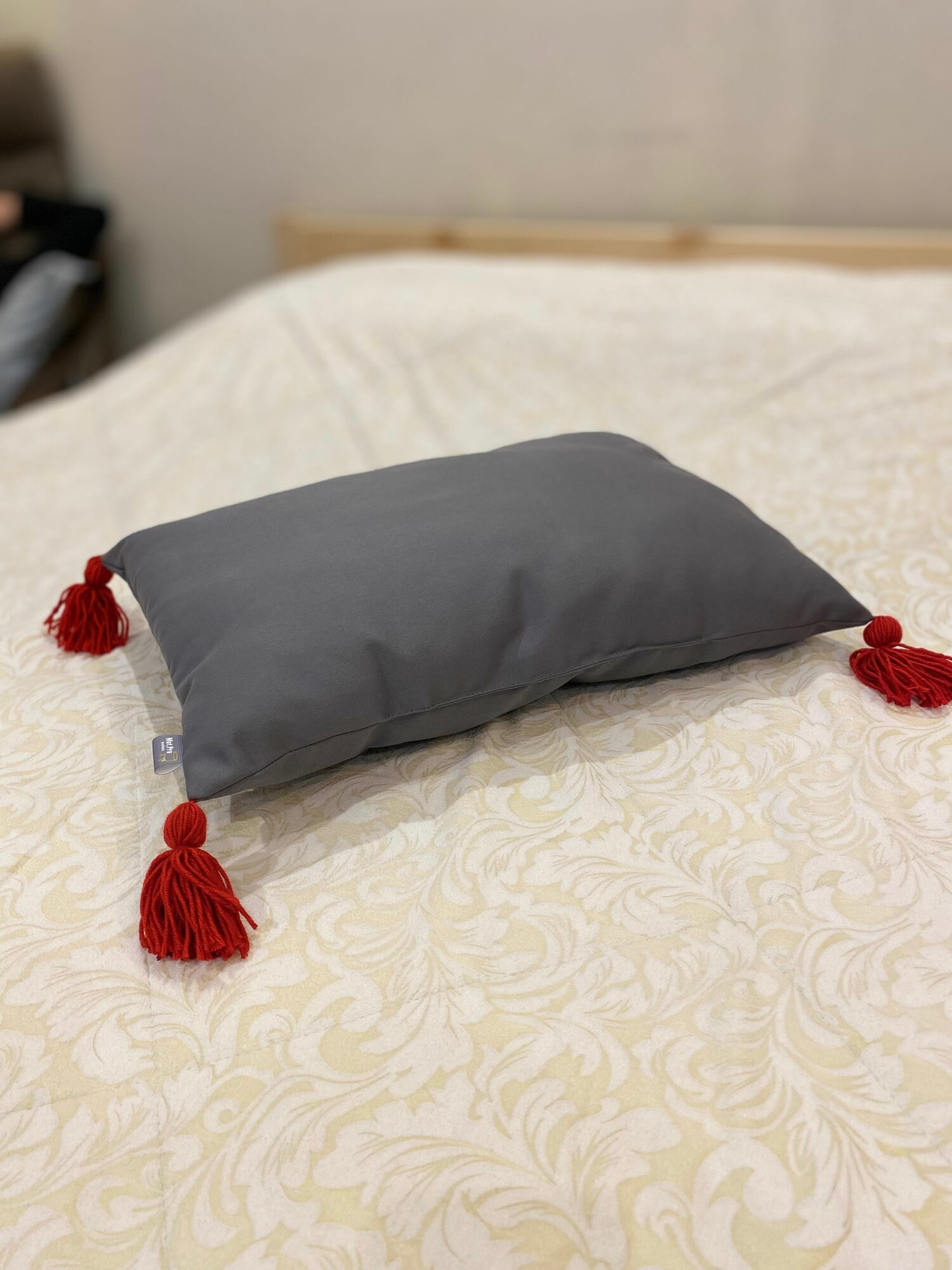 Отзывы на Подушка декоративная с красными кисточками, 50*35, MotPro.brothers, серая