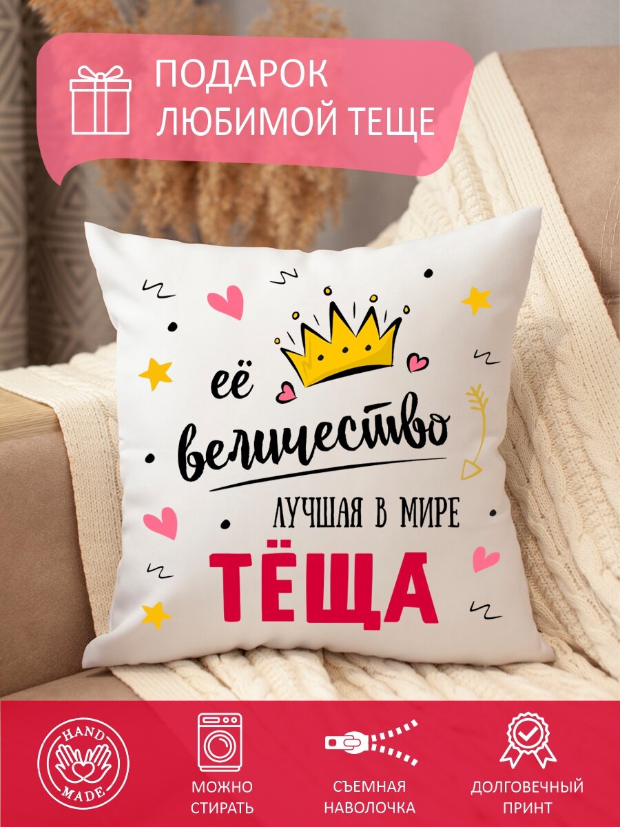 Отзывы на Подушка декоративная теще ее величество, диванная, с надписью, в подарок, съемный чехол