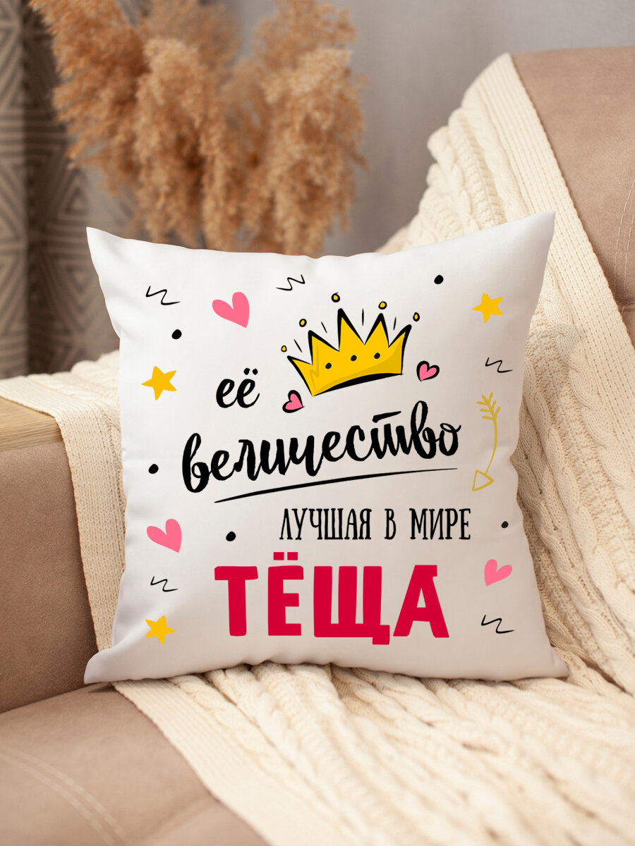 Подушка декоративная теще ее величество, диванная, с надписью, в подарок, съемный чехол информация: