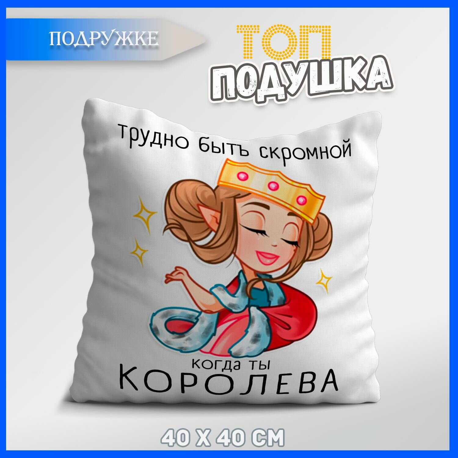 Отзывы на Подушка топподарок "Трудно быть скромной, когда ты королева", 40х40 см