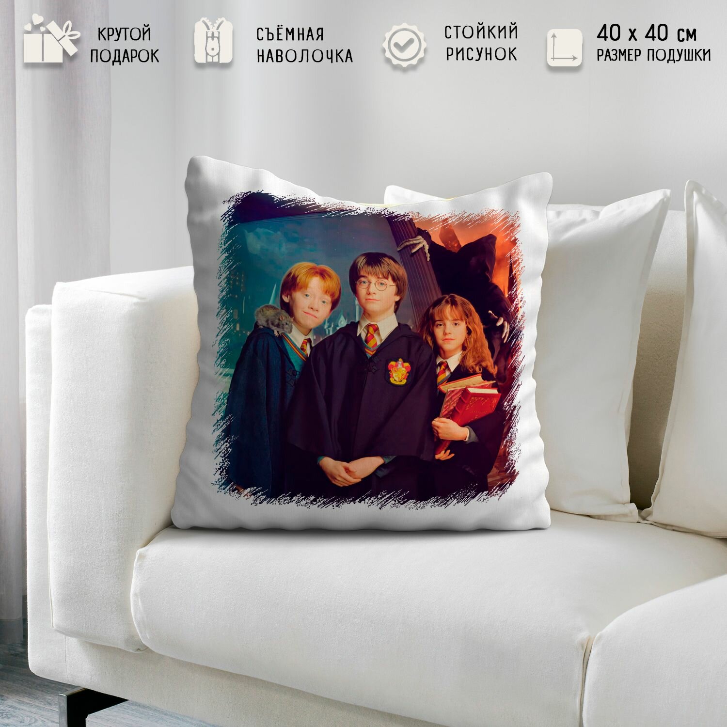 Подушка подарочная 40 х 40 см с принтом Гарри Поттер информация: