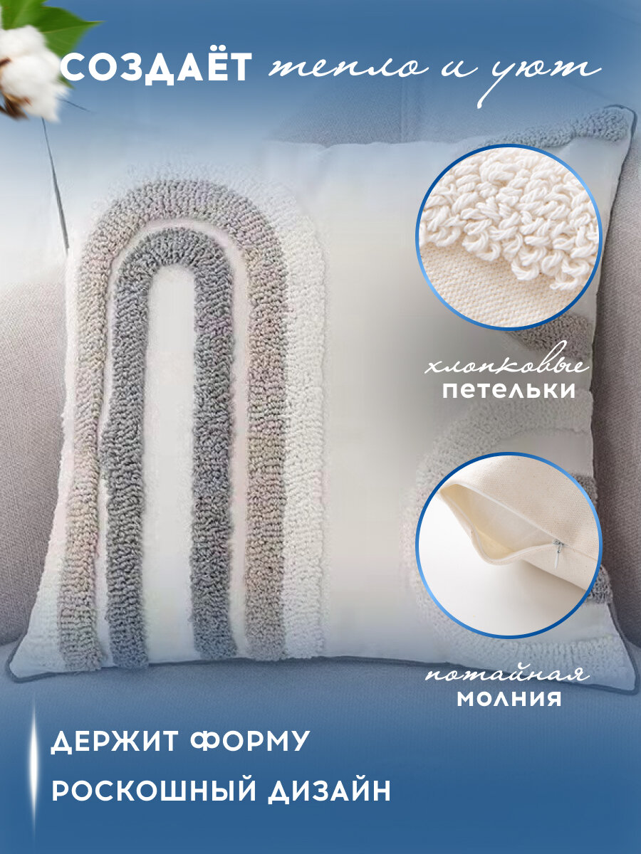 Наволочка декоративная 45х45 на молнии чехол на подушку бохо "Дуги" информация: