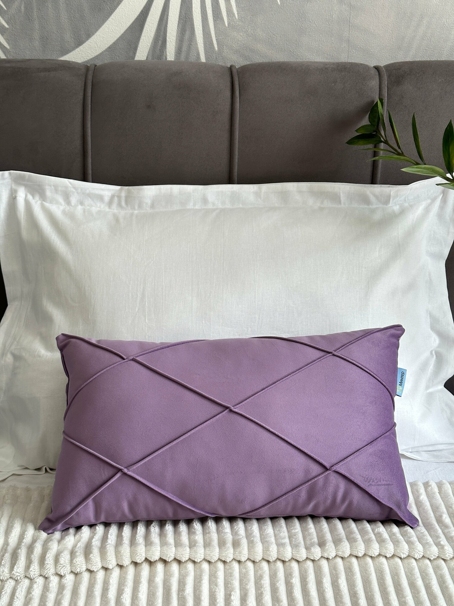 Декоративная подушка Минтер, 30x50 см, съемный чехол, велюровая 926 ₽