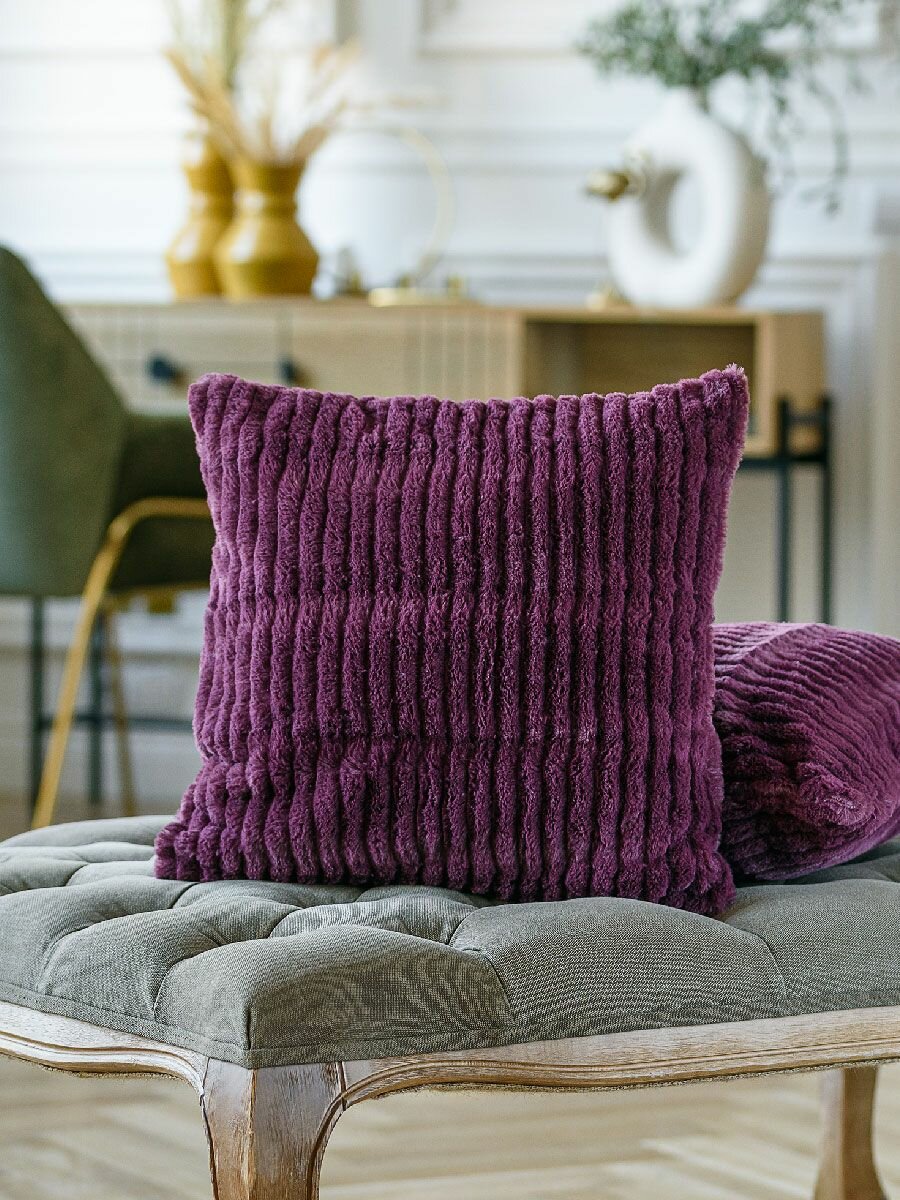 Отзывы на Подушка декоративная со съемным чехлом на скрытой молнии фиолетовая для интерьера 40х40 см, Datch Moroshka