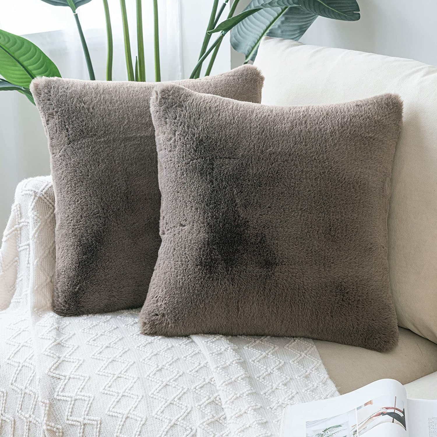 Подушка декоративная меховая 45 х 45см, цвет коричневый, 1 шт. информация: