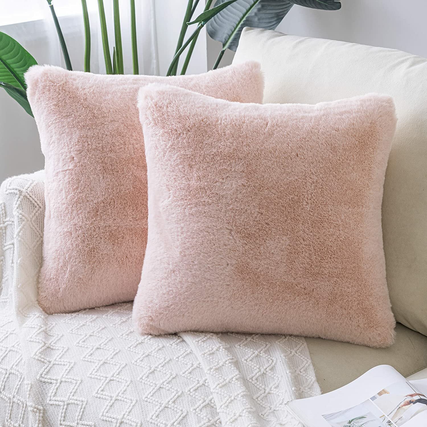 Пушистые декоративные наволочки "Травка", Цвет Сливочный/Молочный, Комплект 2 шт. Размер 50/50 см.