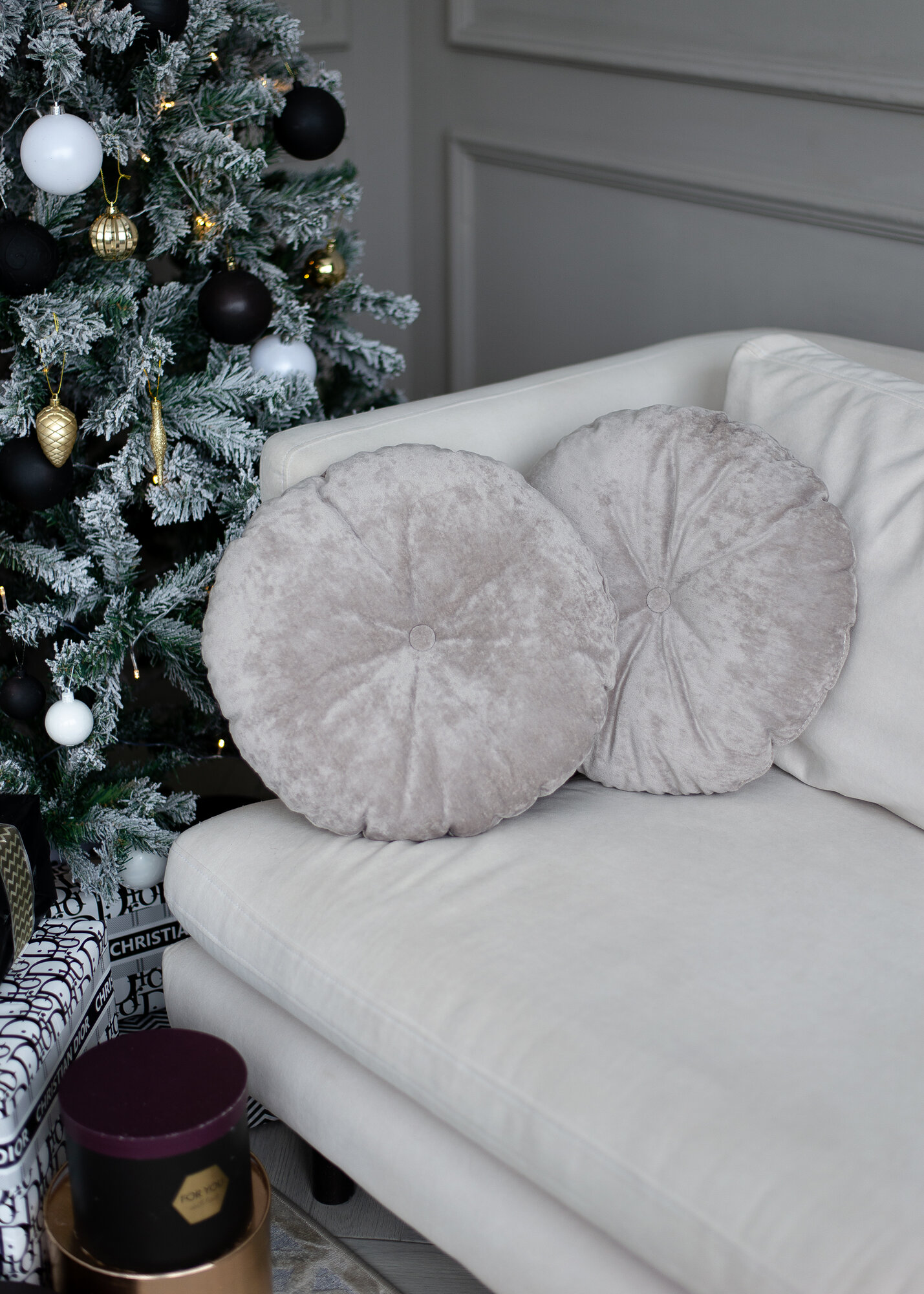 Декоративные подушки для дома круглые 40х40 серый велюр 2 190 ₽