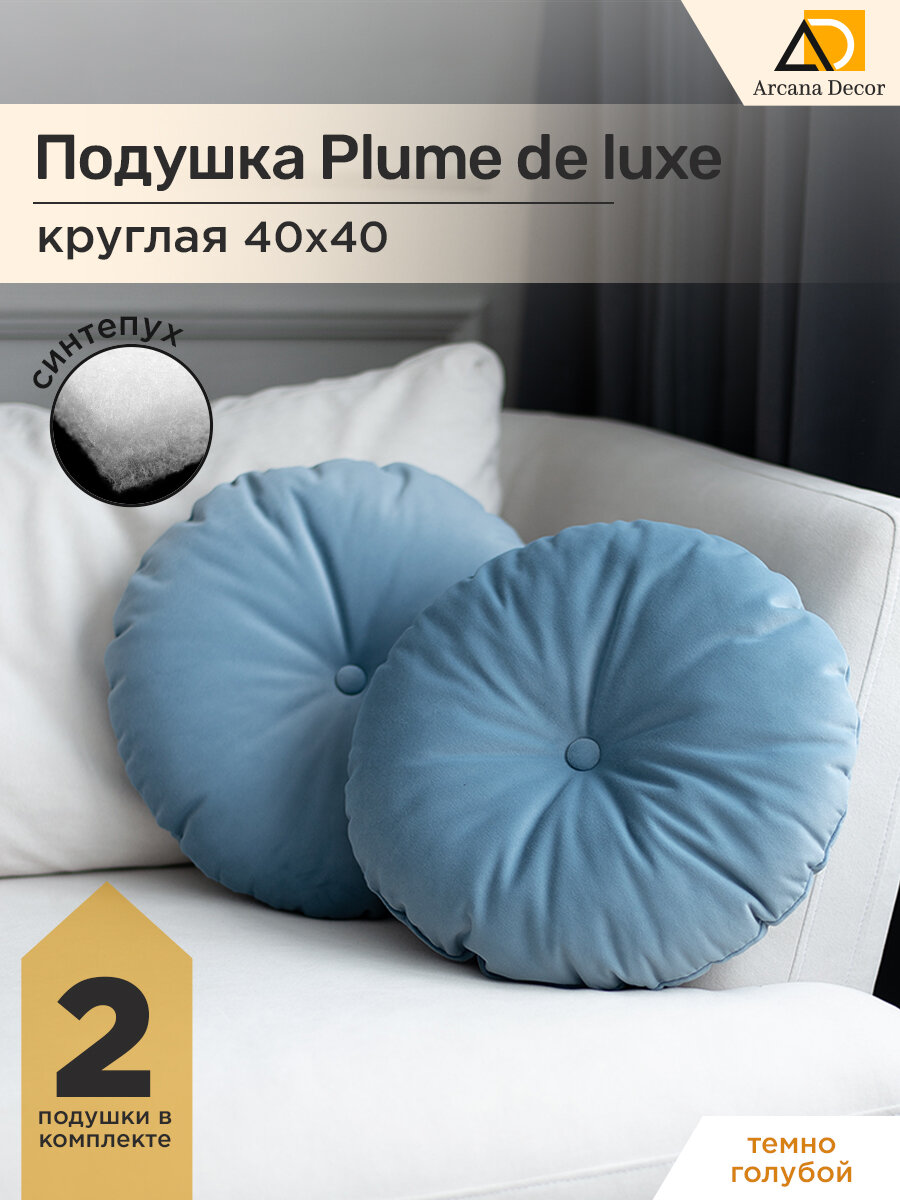 10 цен на Декоративные подушки для дома круглые 40х40 темно-голубой велюр