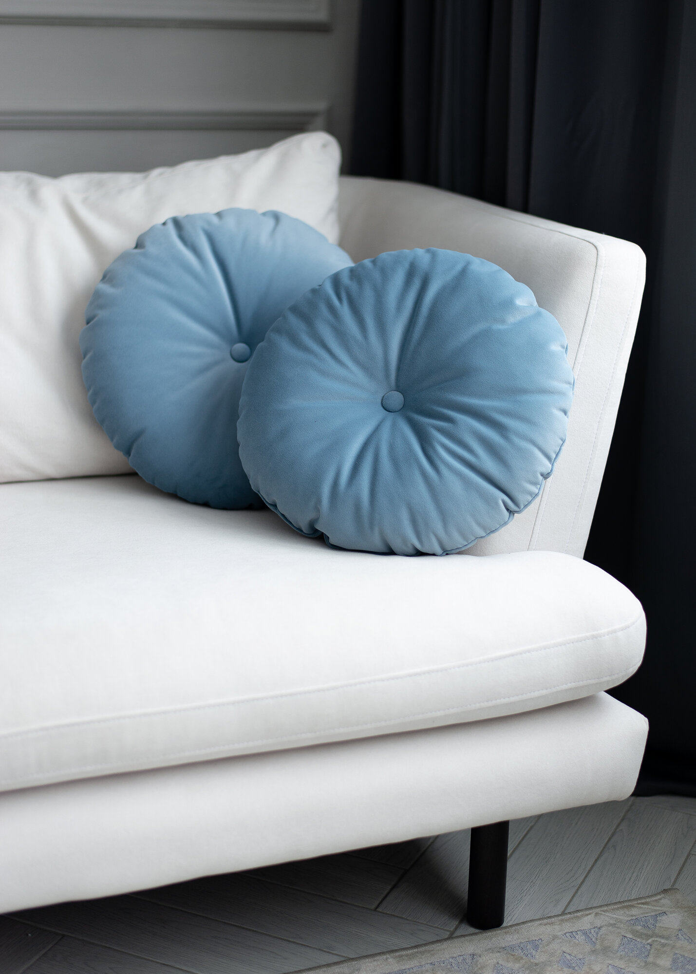 Декоративные подушки для дома круглые 40х40 голубой велюр 2 190 ₽