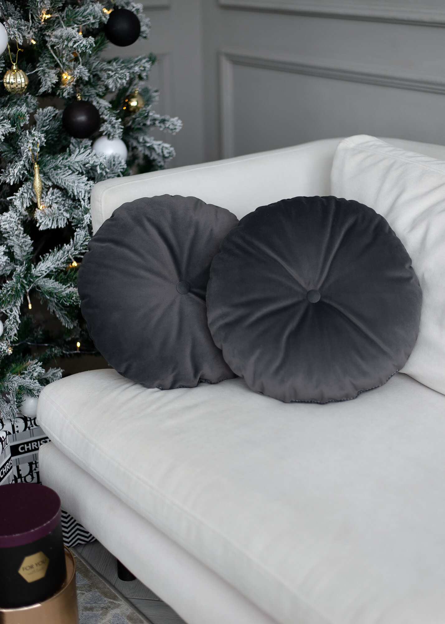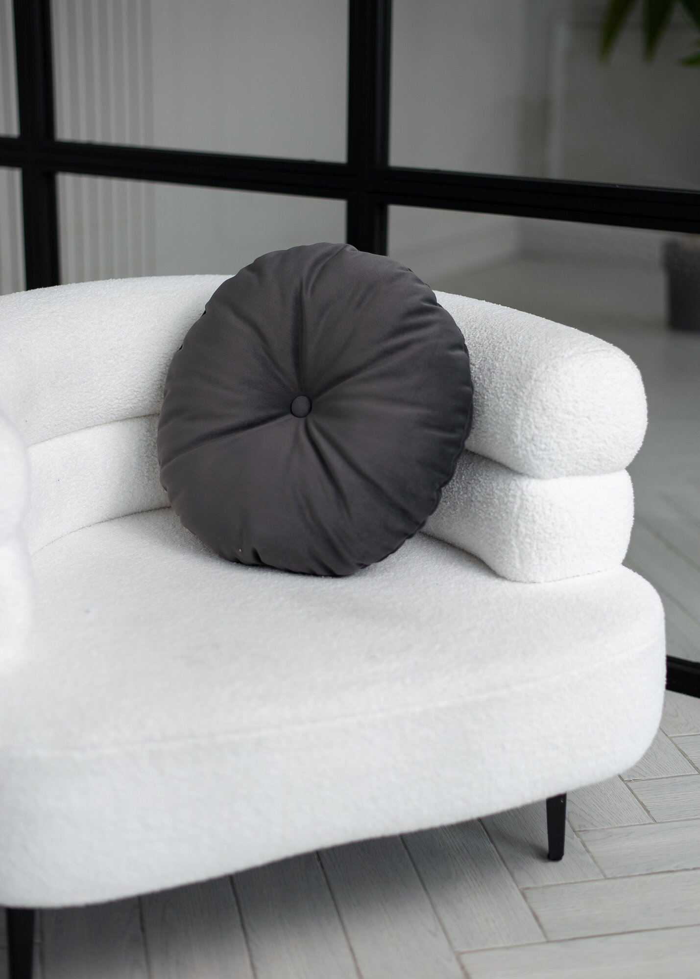 10 цен на Декоративные подушки для дома круглые 40х40 графитовый велюр