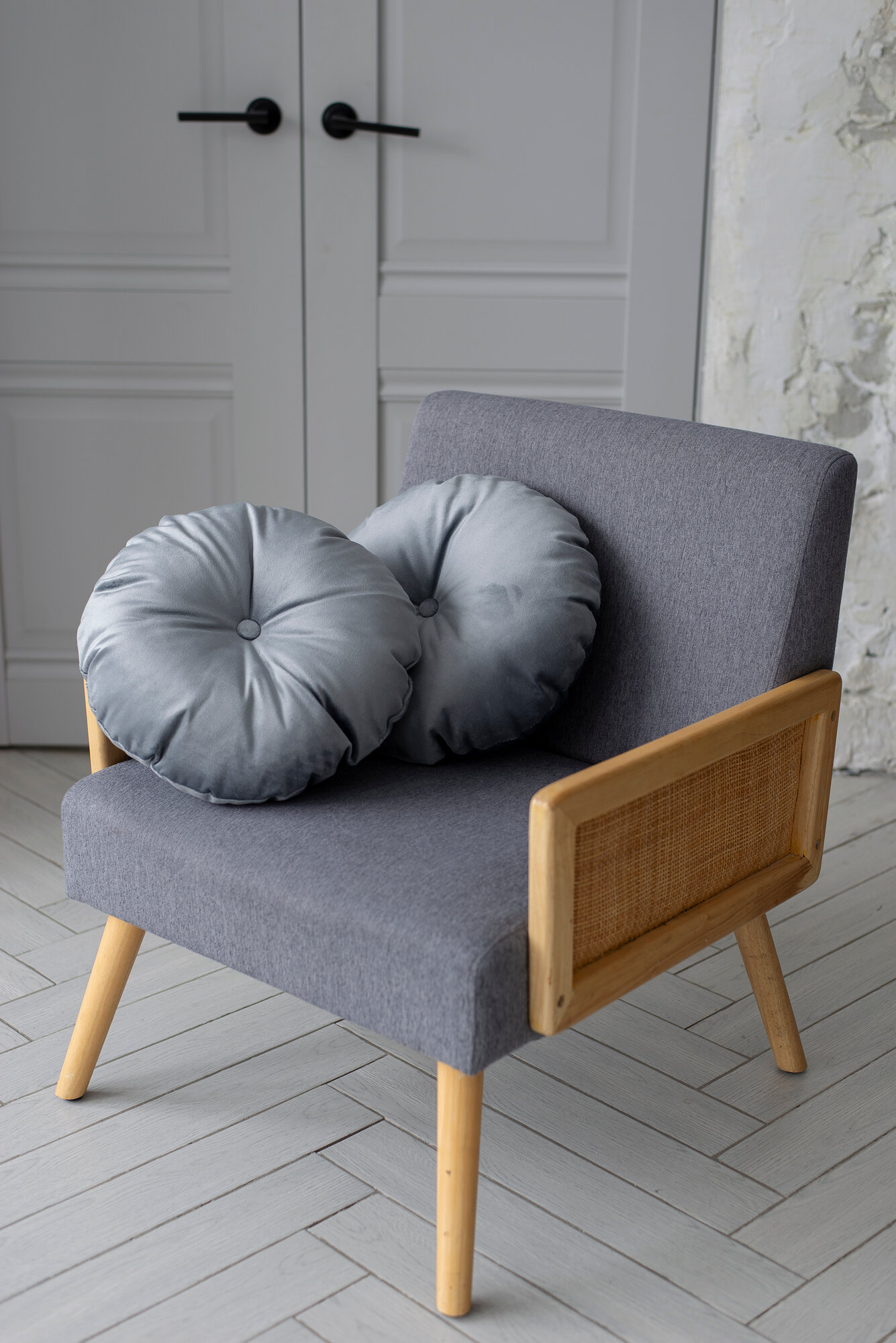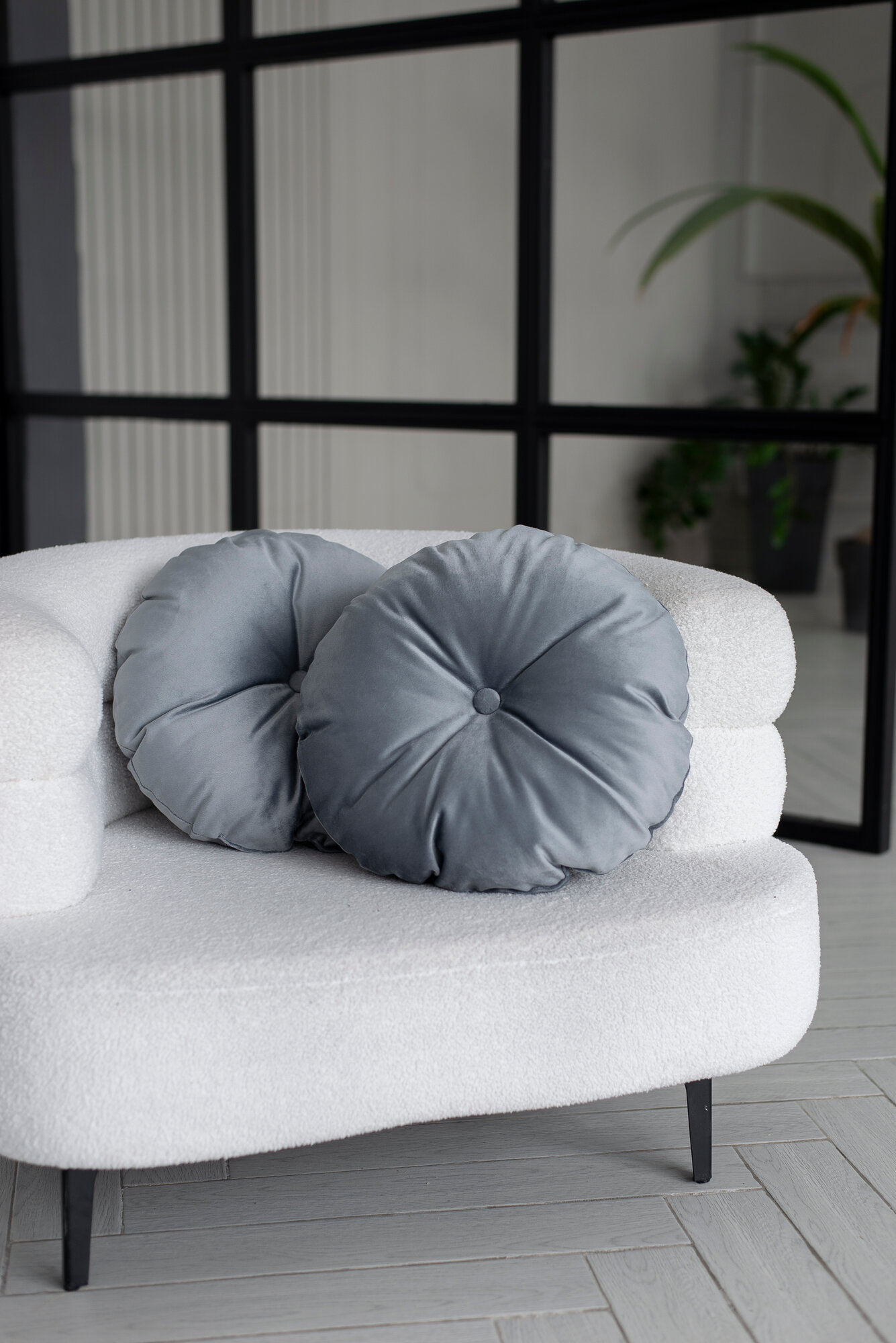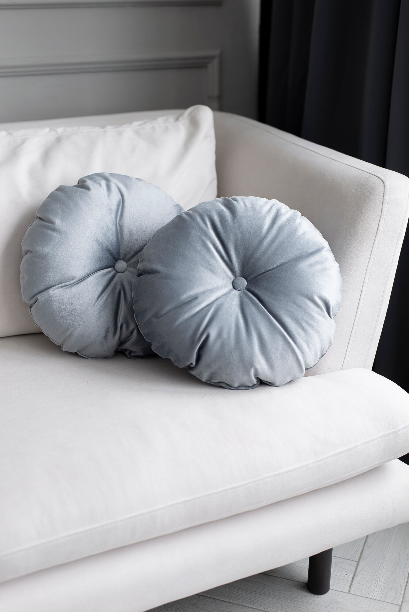 Декоративные подушки для дома круглые 40х40 серый велюр 2 190 ₽