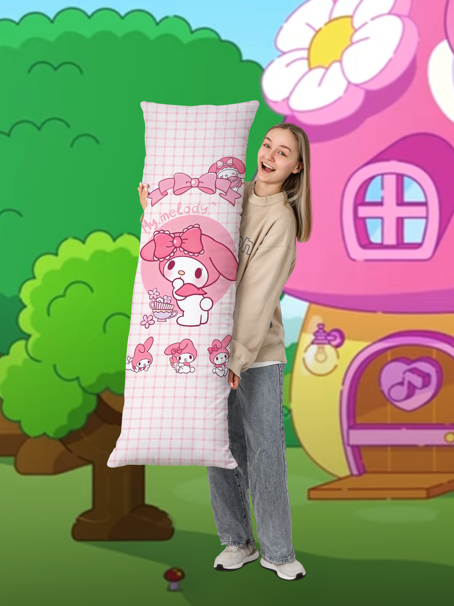 Отзывы на Дакимакура подушка длинная для обнимашек с принтом My Melody хеллоу китти куроми 150х50 см