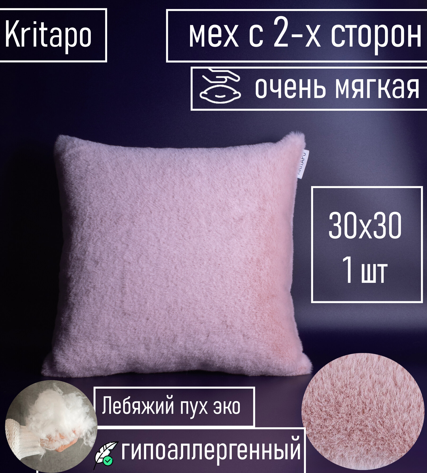 Отзывы на 30х30 см Декоративная подушка из экомеха Kritapo Розовая меховая подушка