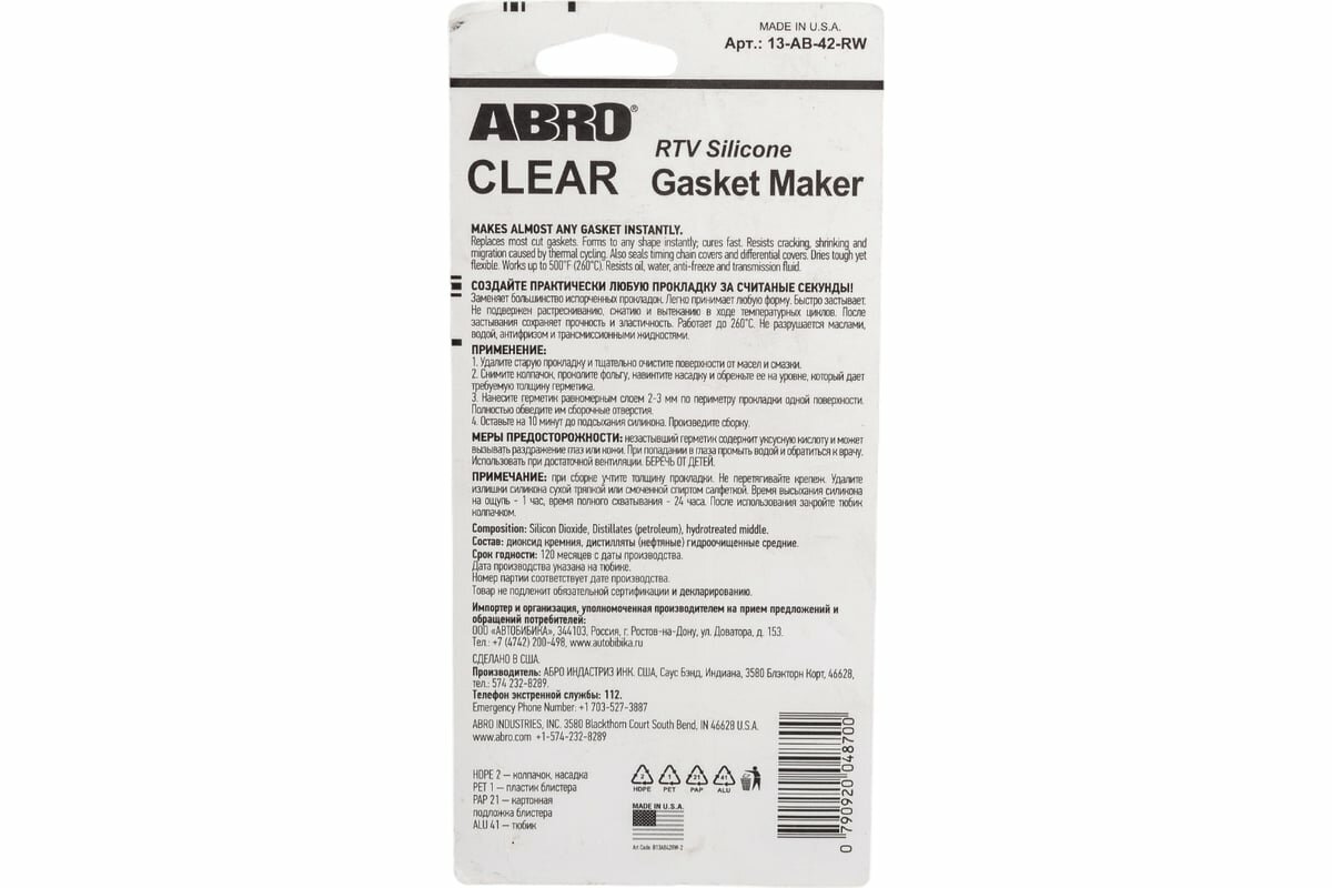 Герметик Прокладок Прозрачный, Сша 42,5 Г Abro 13ab-42-R ABRO арт. 13AB42R