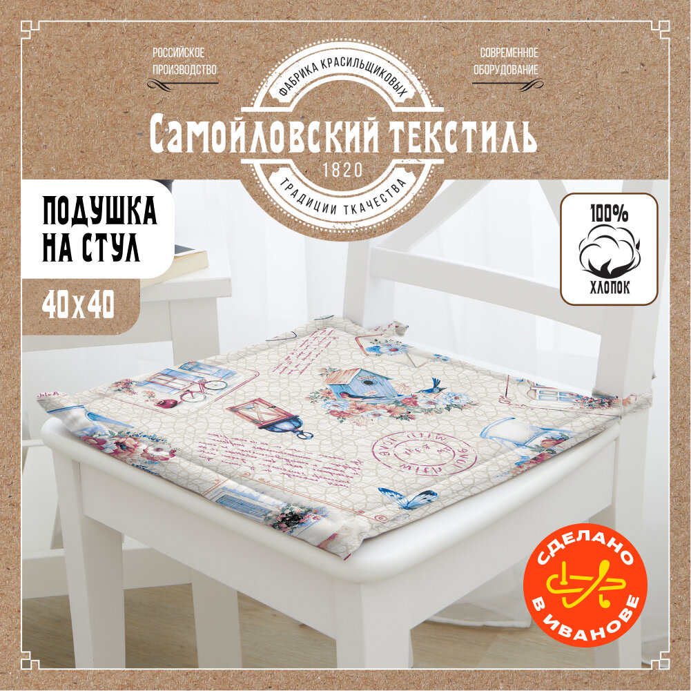 10 цен на Подушка на стул с завязками 40х40 см Самойловский текстиль - 1 шт, хлопок 100%