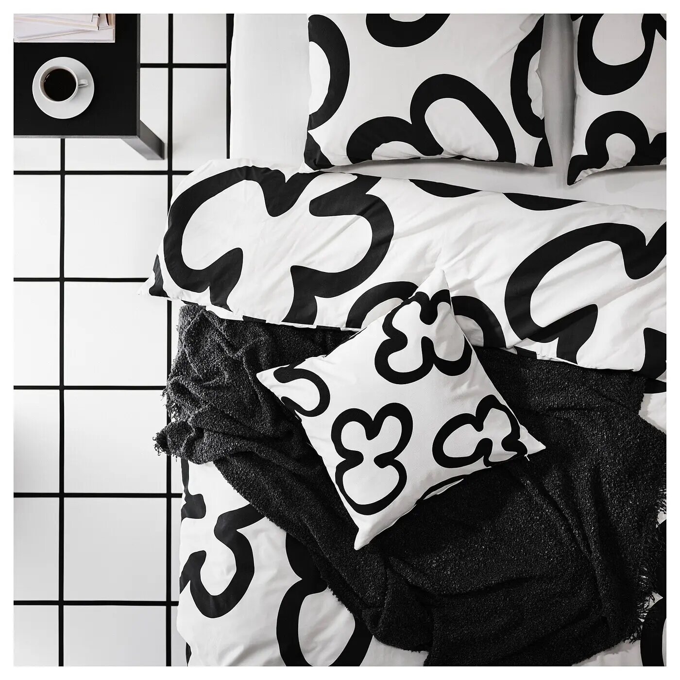 Чехол для подушки IKEA KLIPPBRÄCKA, белый/черный, 50x50 см, хлопок/полиэстер информация: