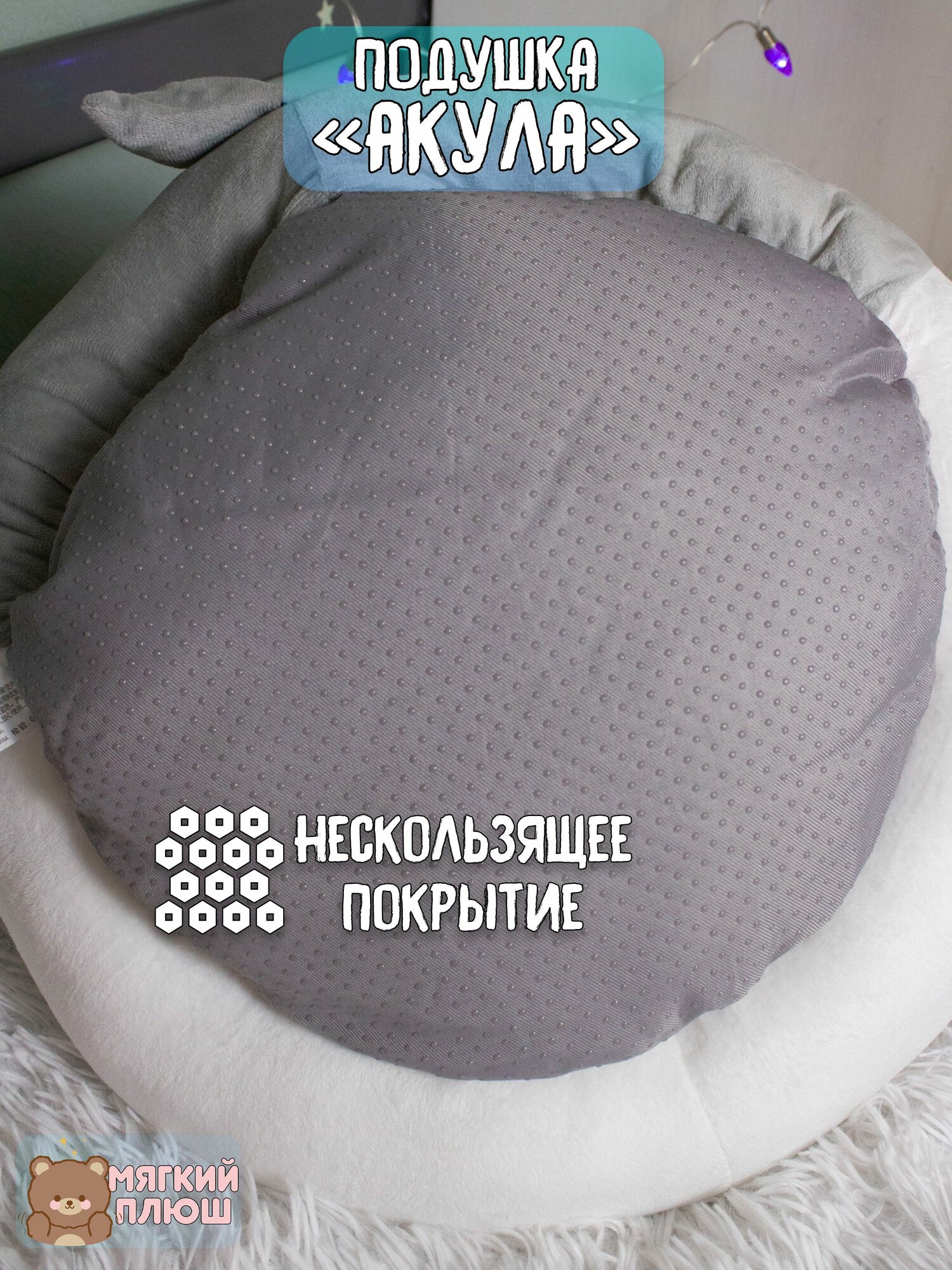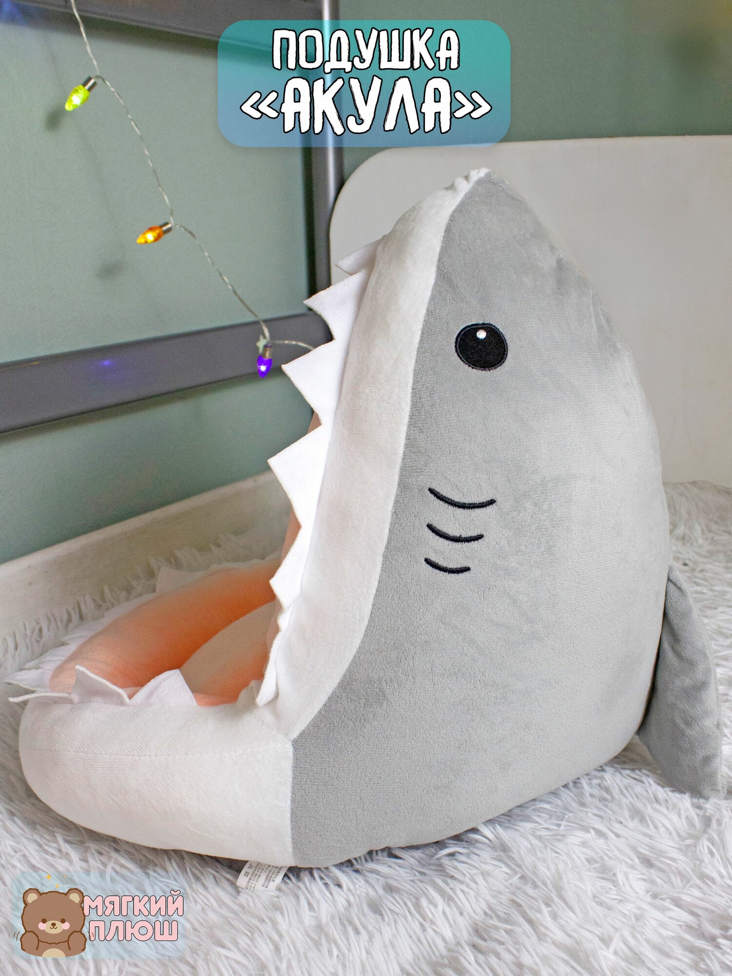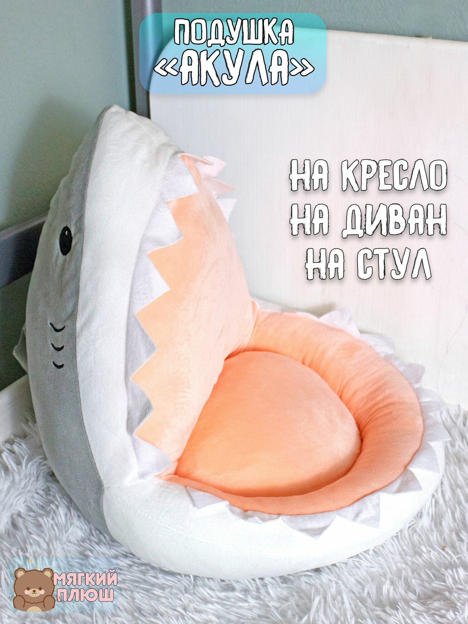 Подушка сидушка на стул Акула 40*40*40 см серая информация: