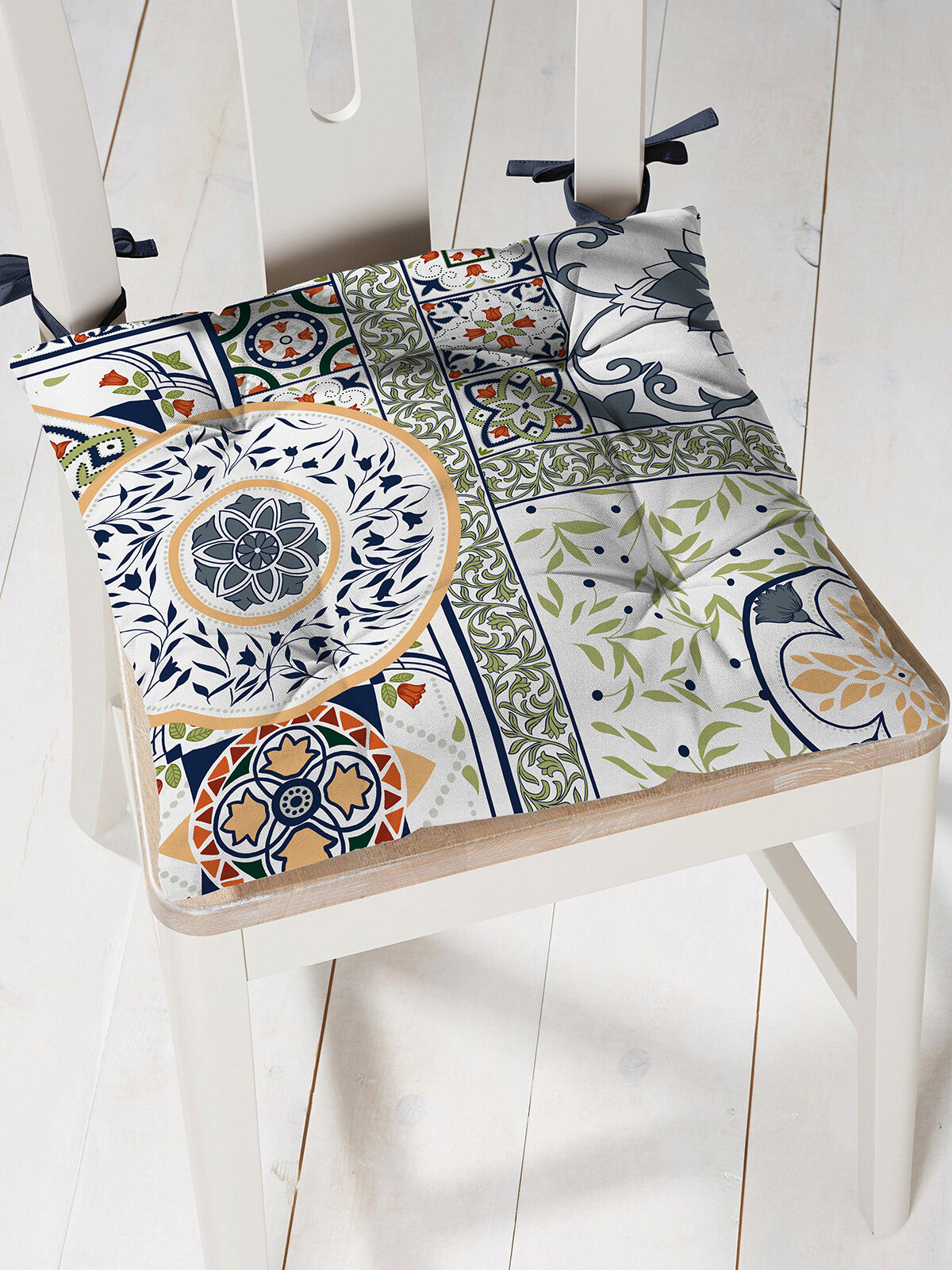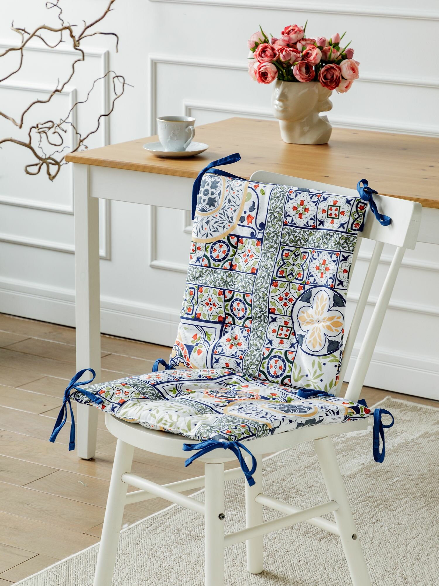 Отзывы на Mia Cara Подушка на стул с завязками 2 шт квадратные плоские 40х40 Азулежу 30363-1