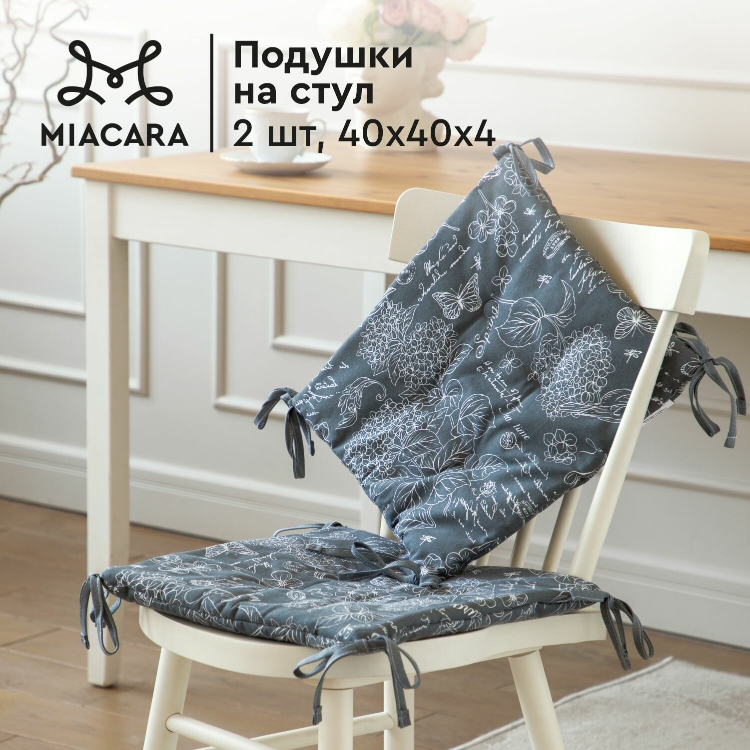 Отзывы на Mia Cara Подушка на стул с завязками 2 шт квадратные плоские 40х40 Жозефина графит 30284-11