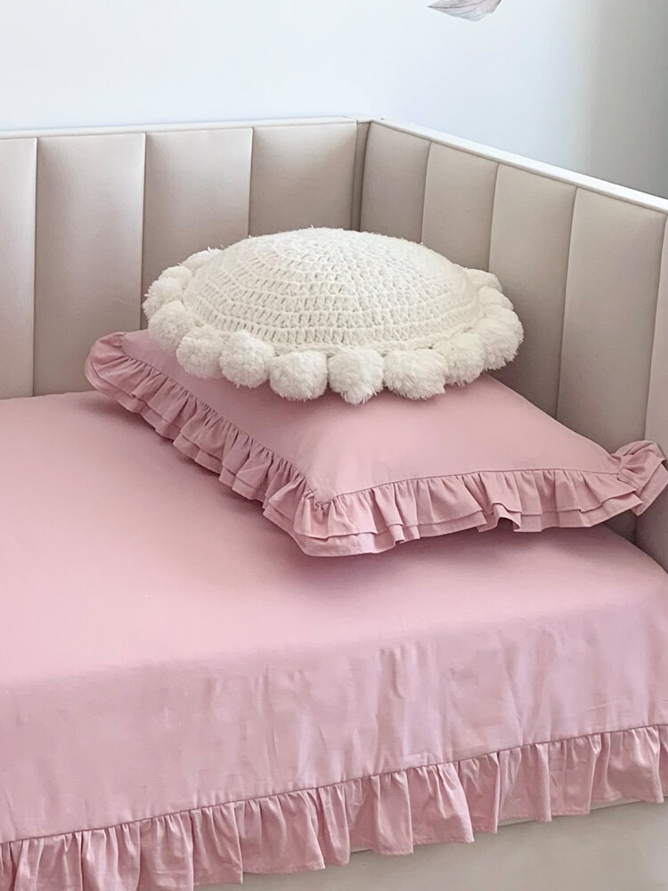 Декоративный чехол (наволочка) с рюшами, 40х60 см, сатин - розовый 1 690 ₽
