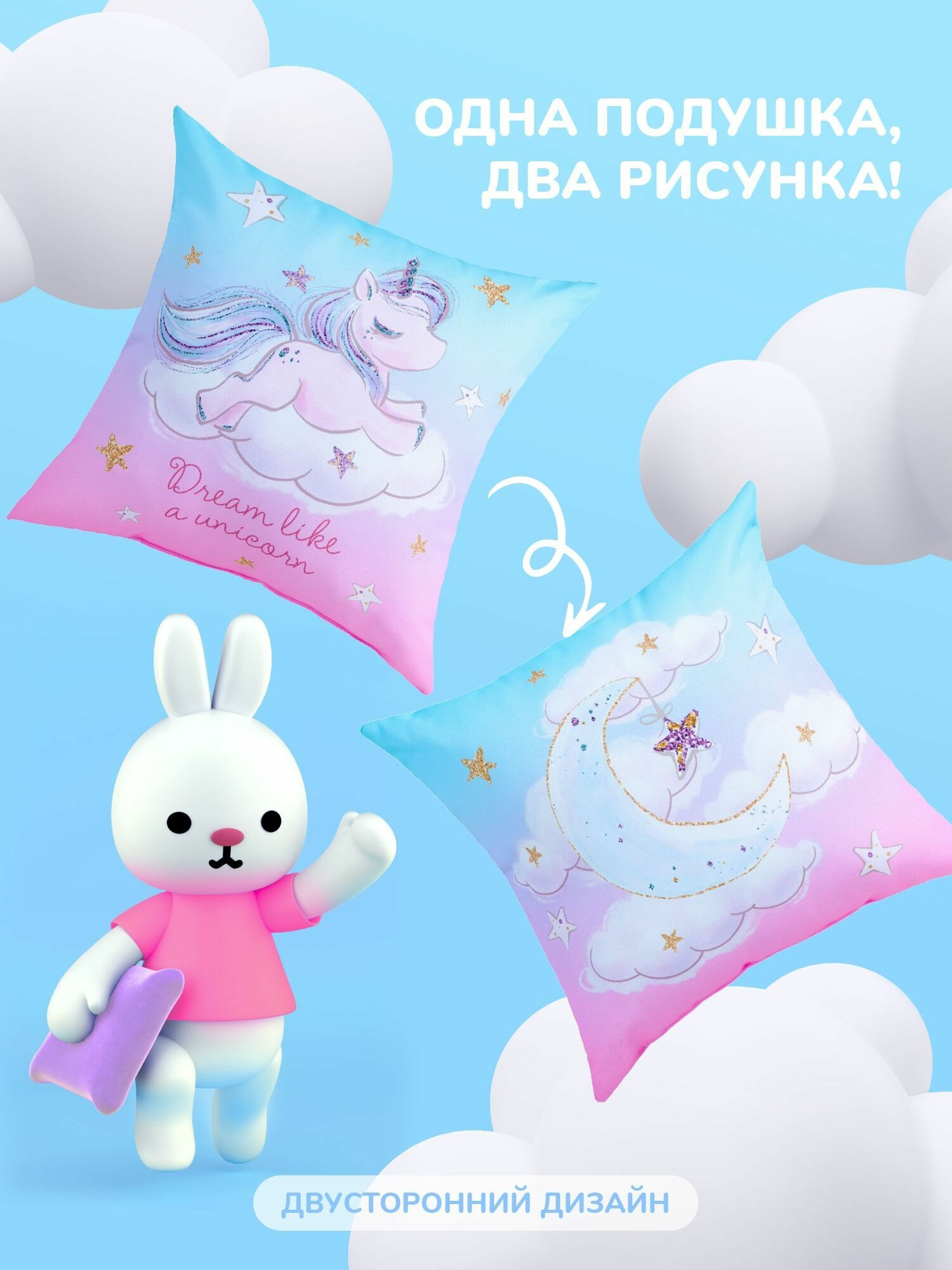 Подушка декоративная габардин 40х40 "Juno" рис 16518-1 Сказочный единорог информация: