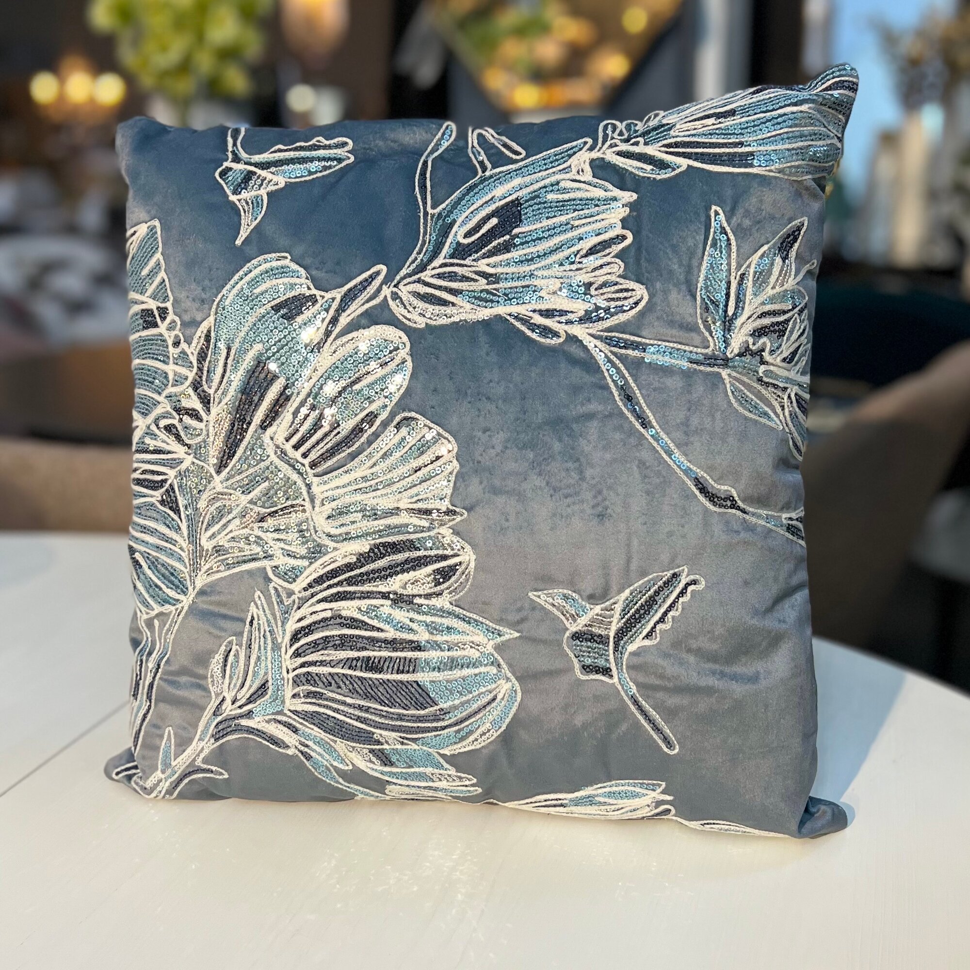 70SW-32902 Подушка с пайетками "Арт Магнолия" синий 45*45см информация: