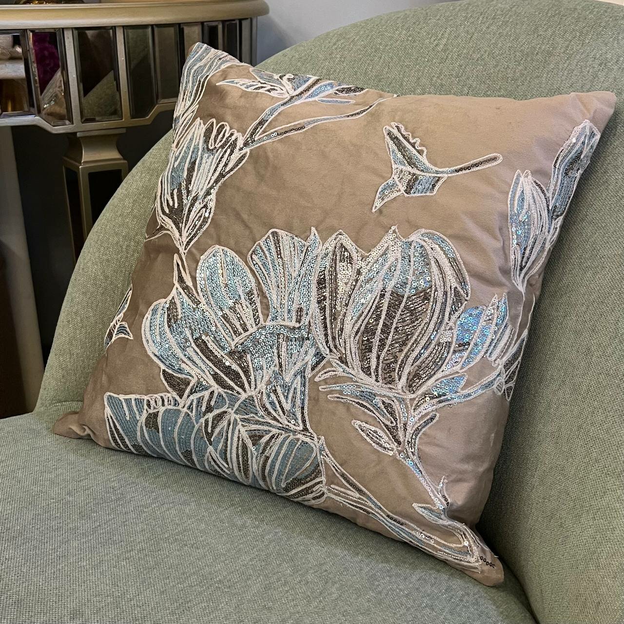 70SW-32906 Подушка с пайетками "Арт Магнолия" бежевый 45*45см информация: