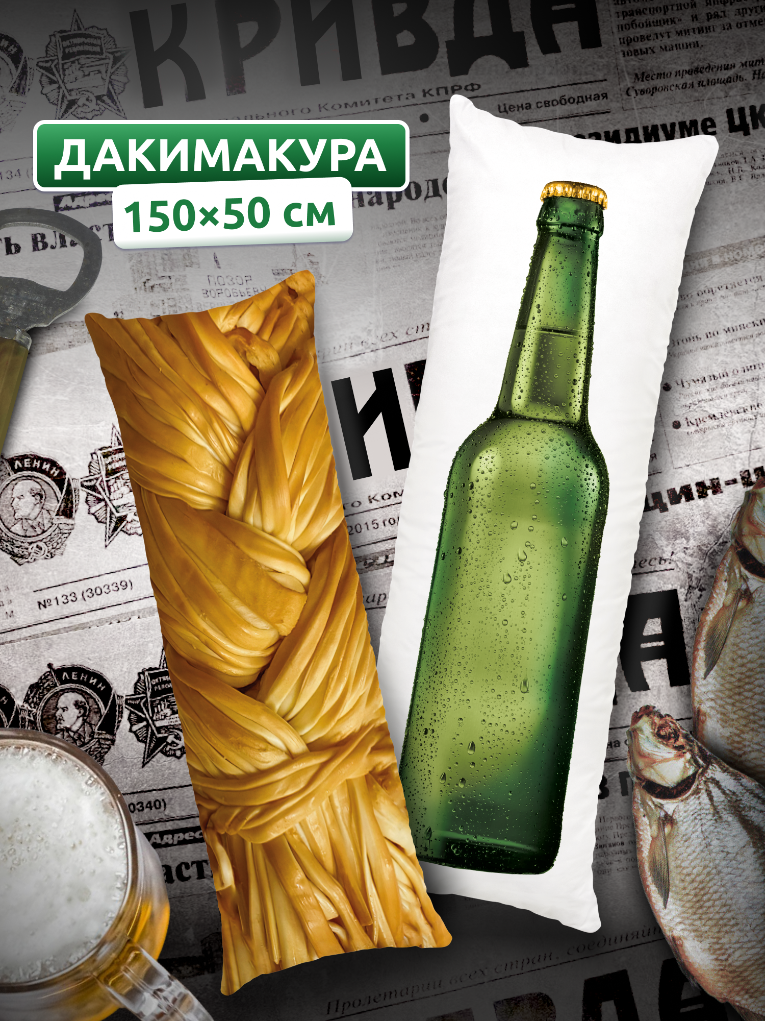 10 цен на Дакимакура подушка длинная для обнимашек с принтом Пиво и Сыр косичка 150х50 см