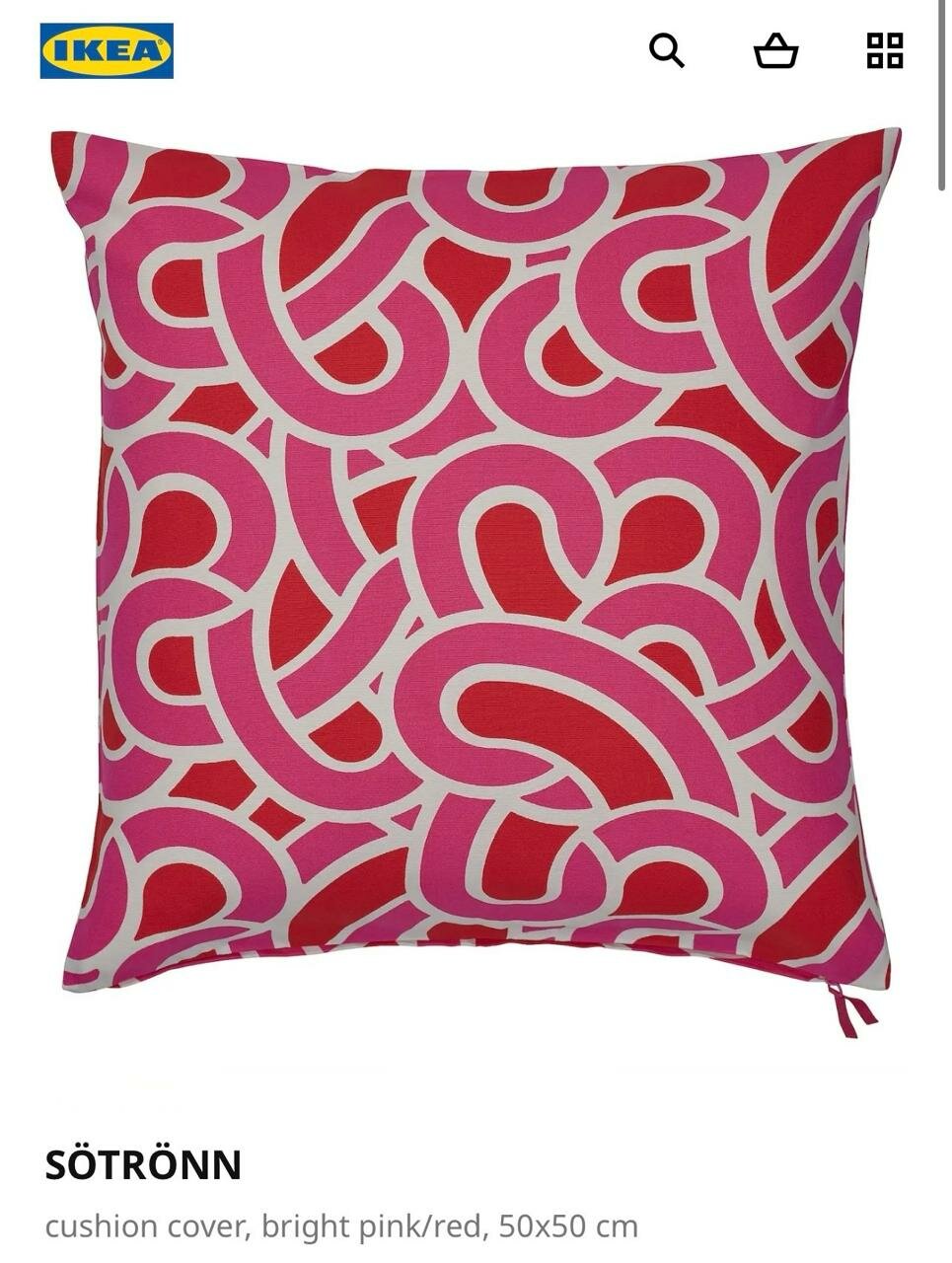 Чехол для подушки IKEA SÖTRÖNN, красный, 50x50 см, 100% хлопок информация: