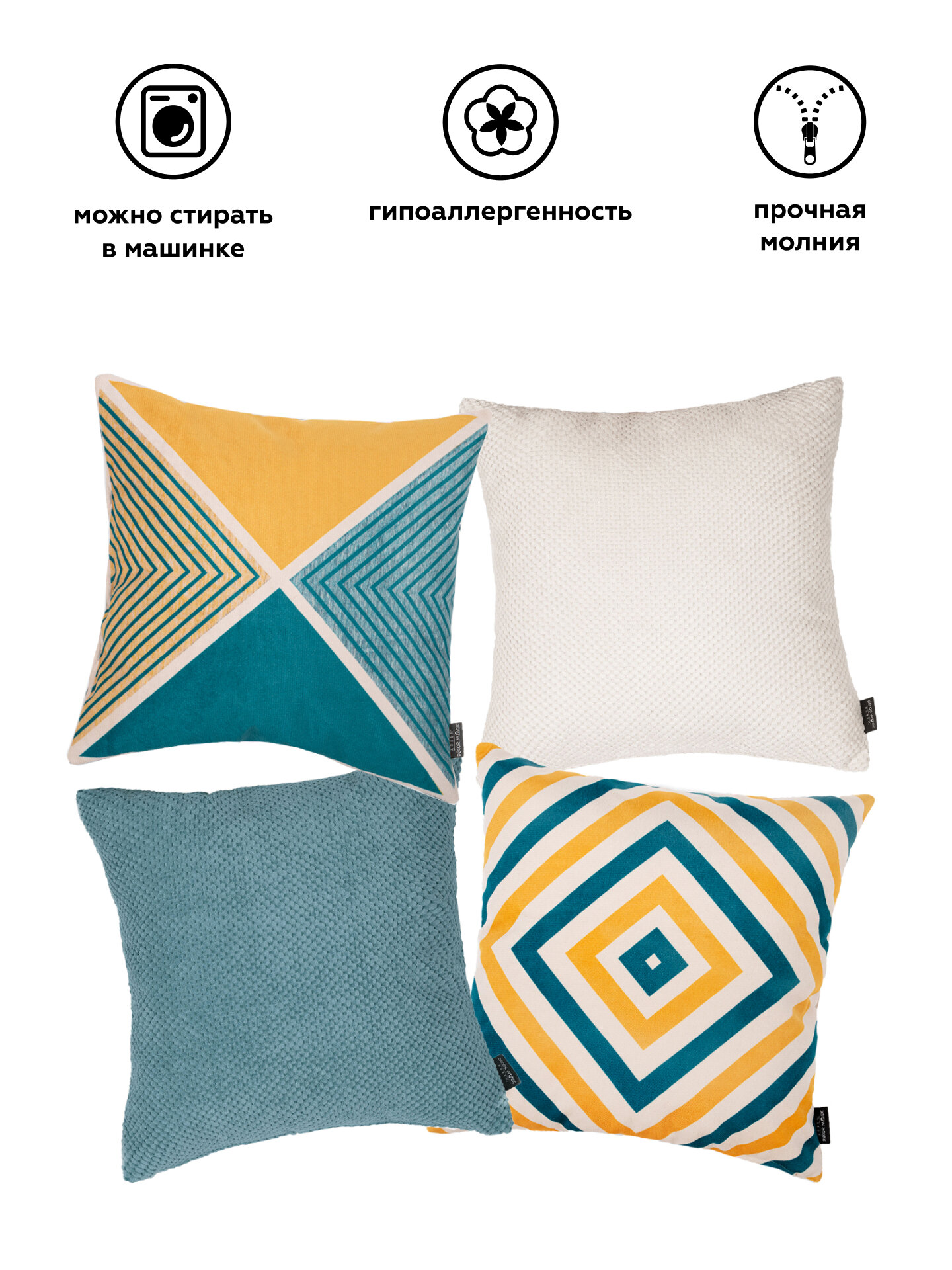Декоративный наволочки 45х45 FREJA/SVEN комплект 4 шт, на молнии информация: