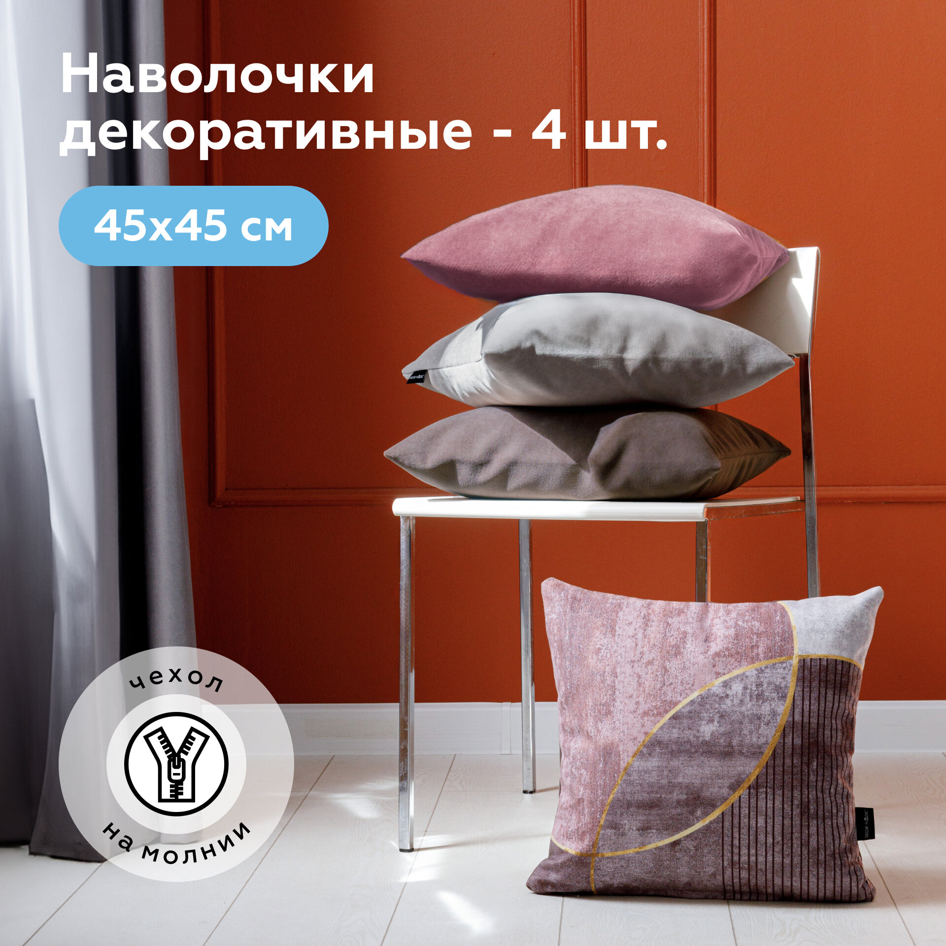 Декоративные наволочки на подушки 45х45 LOUNGE, чехол на молнии комплект 4 шт 2 033 ₽