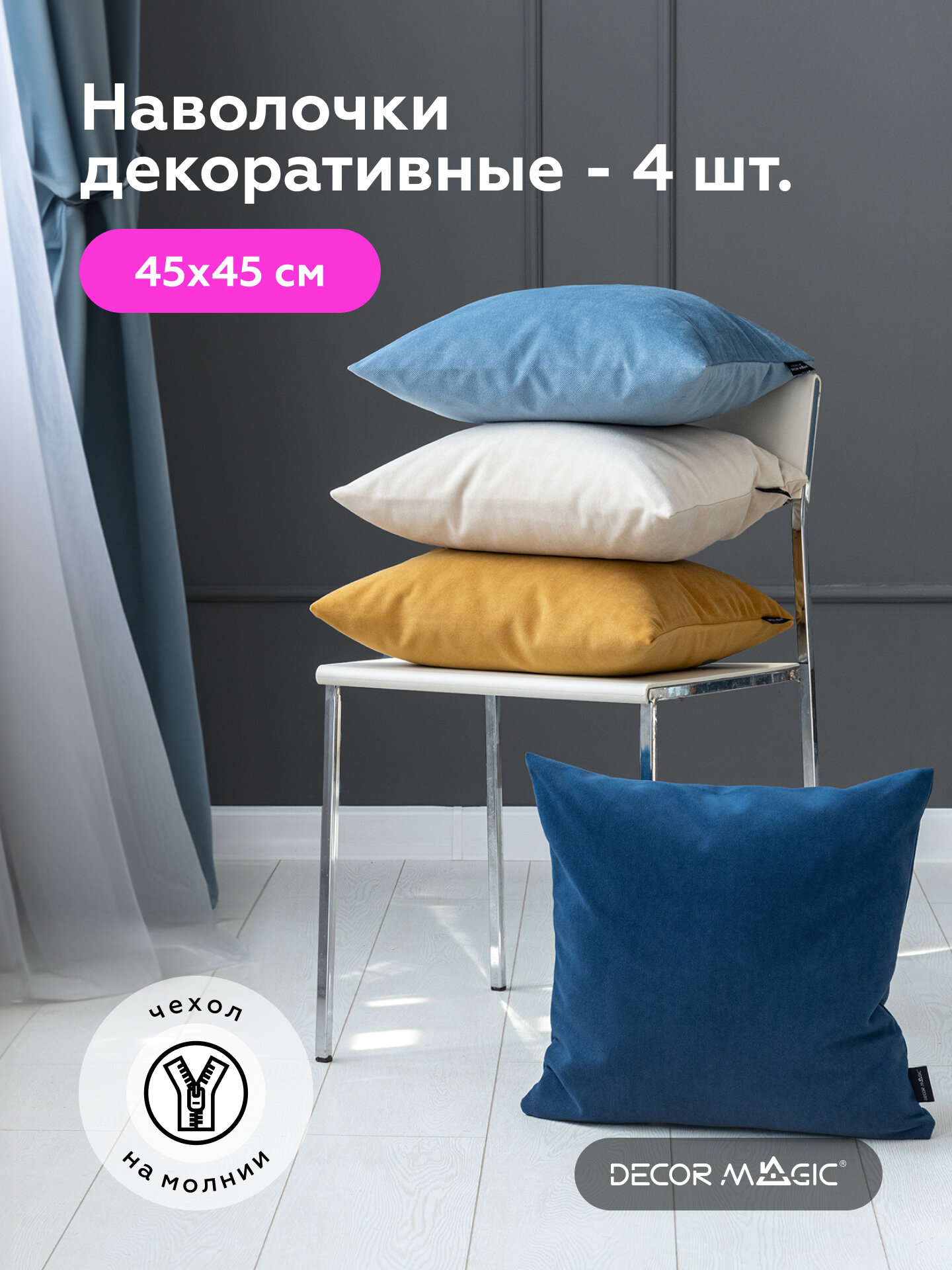 Комплект декоративных чехлов для подушек 45х45 SOLA BLANCA на молнии, велюр 4 шт 2 033 ₽