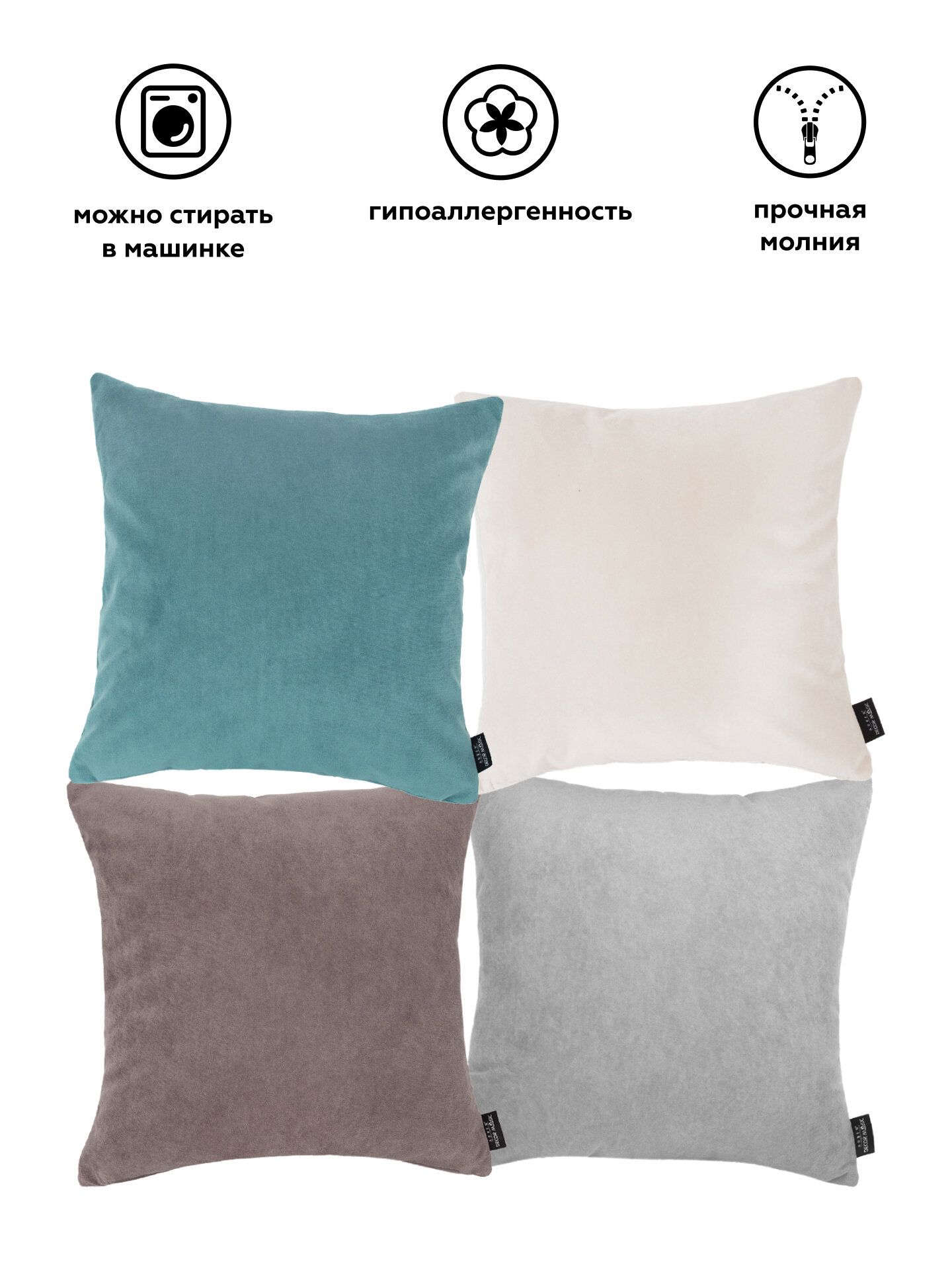 Наволочки декоративные на подушки 45х45 MEMORY/OASIS/VEGA 4 шт, на молнии, велюр 2 033 ₽