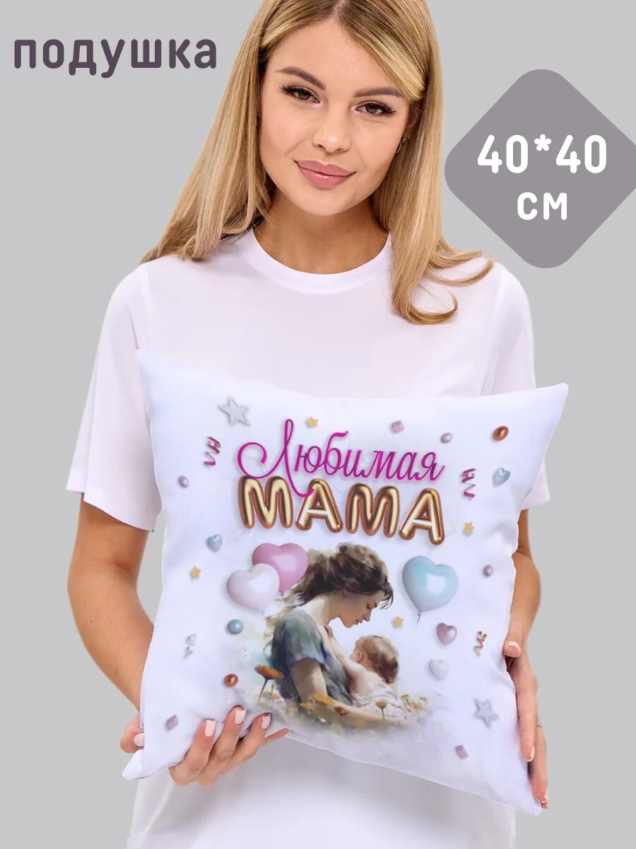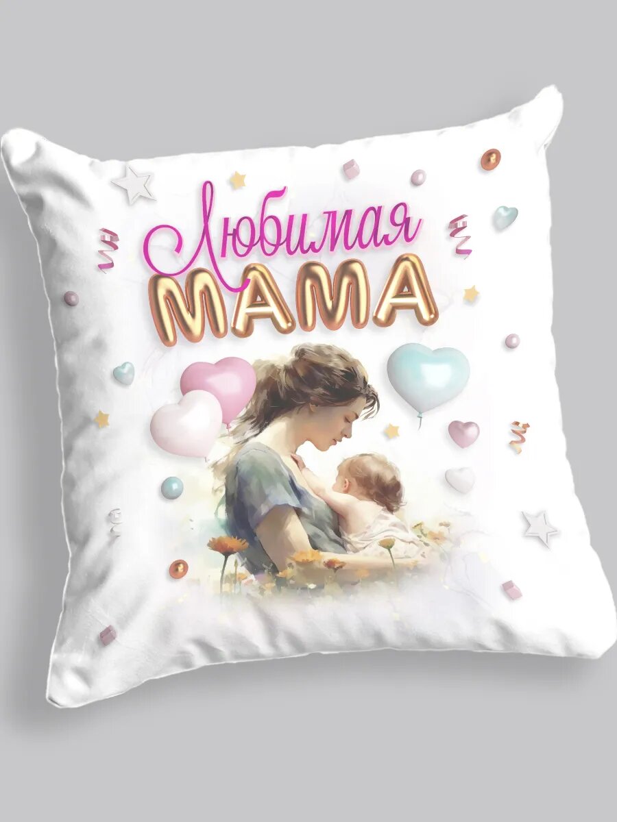 Отзывы на Декоративная подушка Филя "Любимая мама", 40x40 см, 1 шт, с рисунком, двухсторонняя, цветная