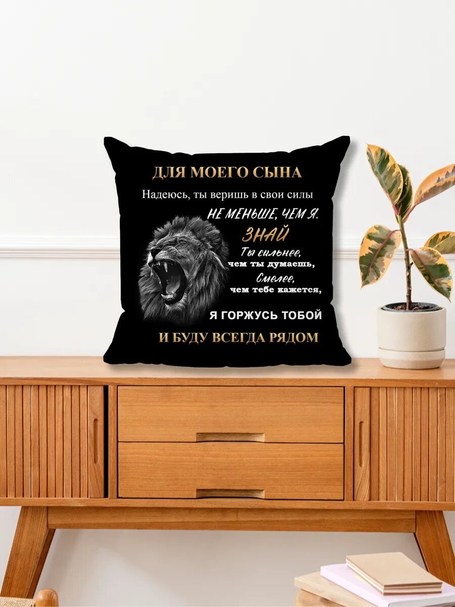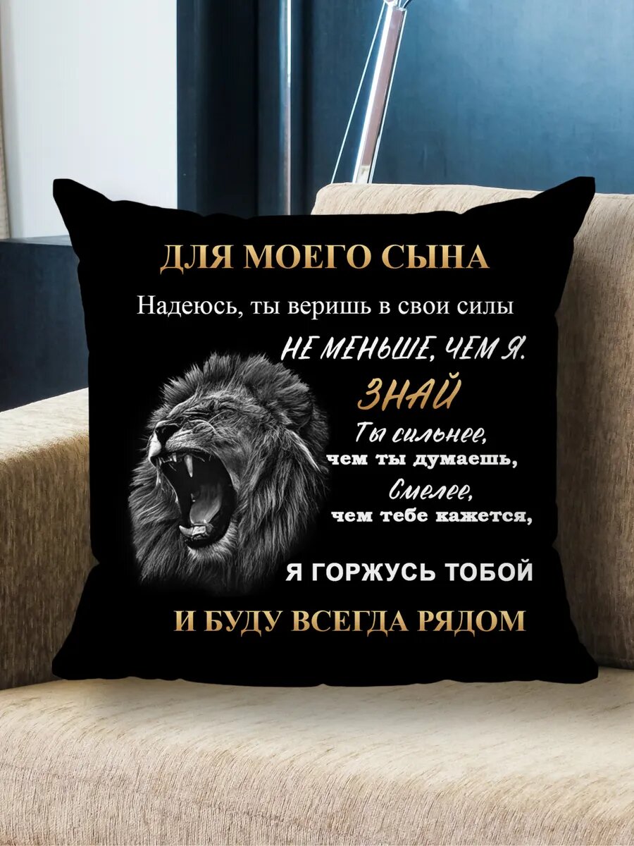 Отзывы на Подушка декоративная "Любимому сыну", Pushka_podushka, велюр, 45x45см, мягкая, черная