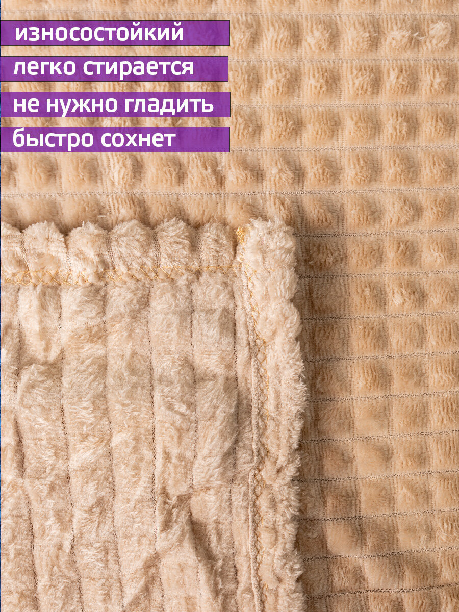 Плед-покрывало на диван "Кубик", 200x220 см, велсофт, двухсторонний, сливочный 845 ₽