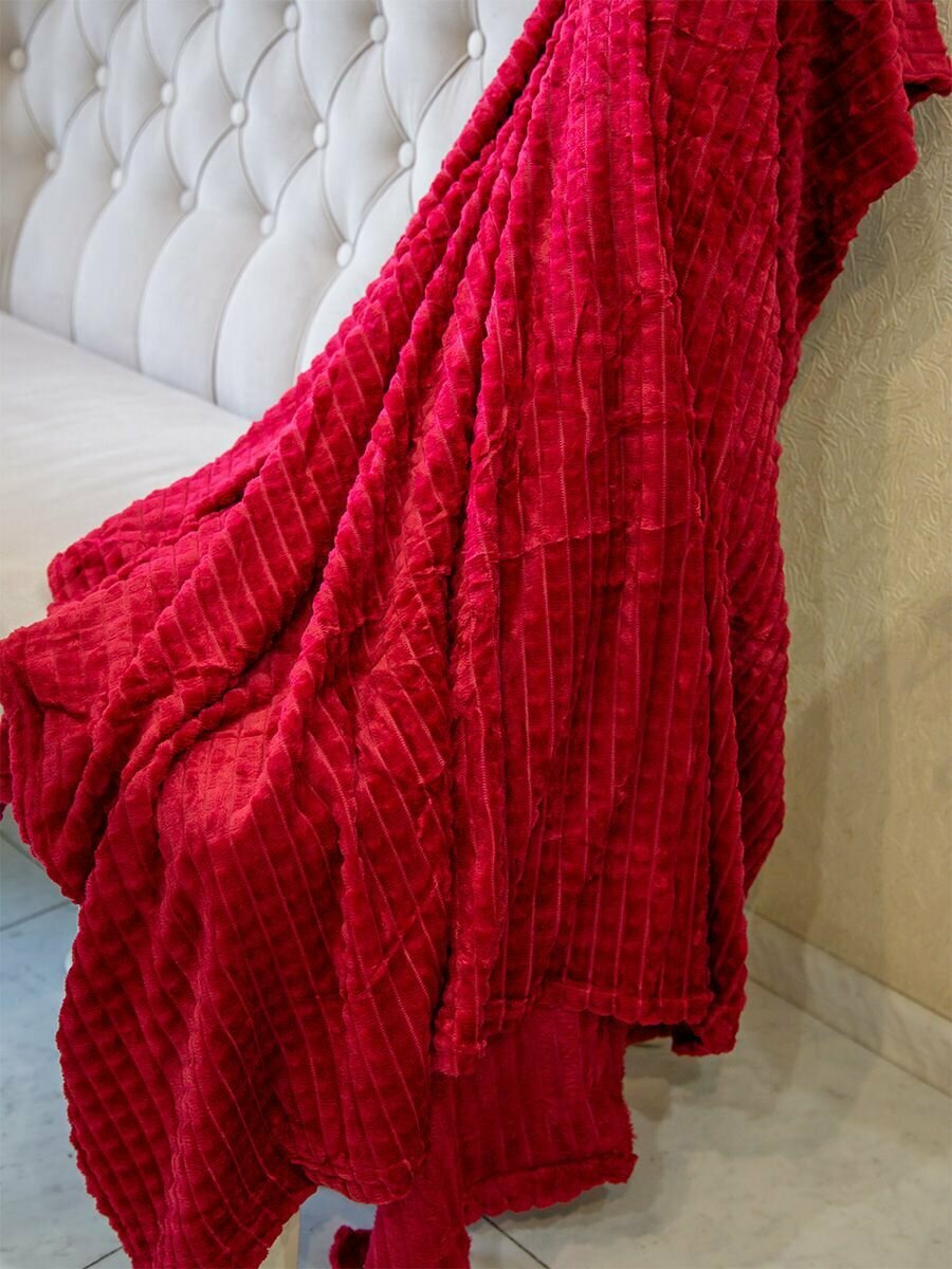 Плед-покрывало "Домашний текстиль", полиэстер, 200 х 220 см, рубиновый, велсофт информация: