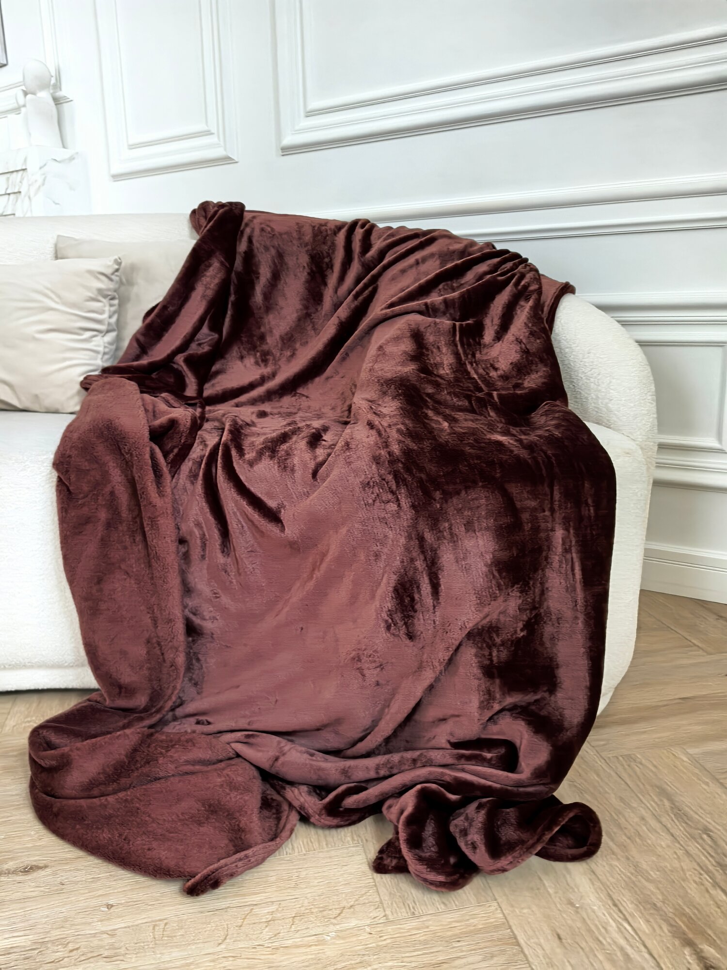 Отзывы на Плед-покрывало "темный шоколад" евро, 200х220 см, велсофт 100% плотность 320 г/кв. м.