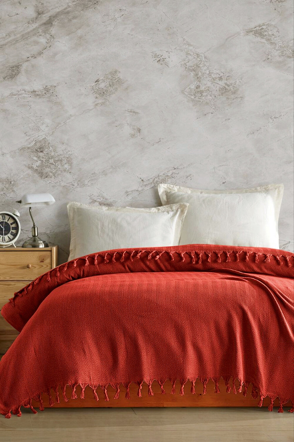 10 цен на Плед 200х230 см на кровать и диван, хлопок двухсторонний, терракотовый