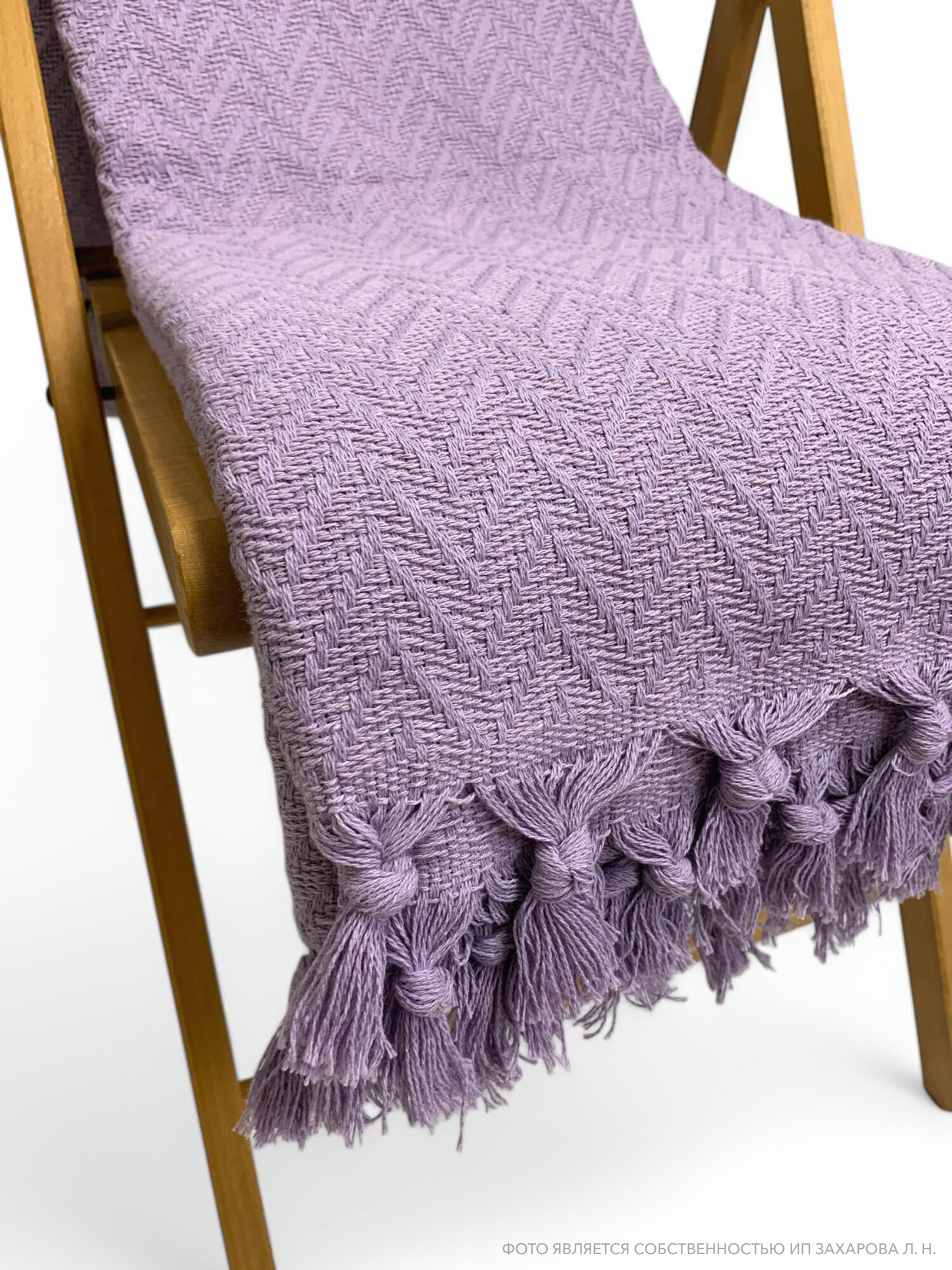10 цен на Плед 220х240 см на кровать и диван 100% хлопок двухсторонний, сиреневый