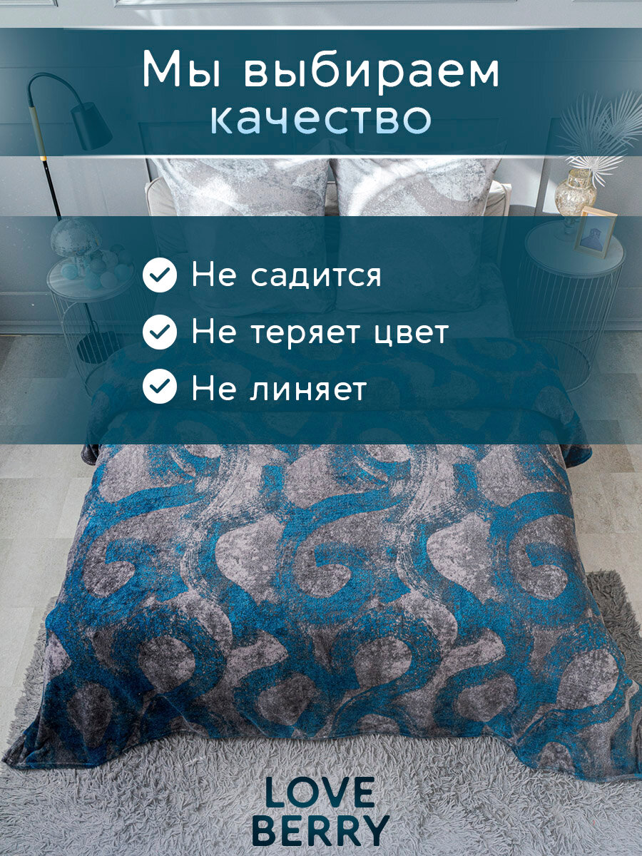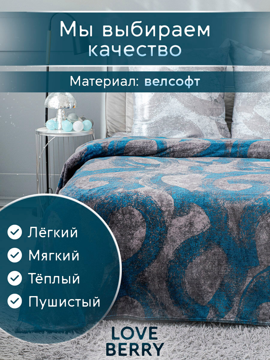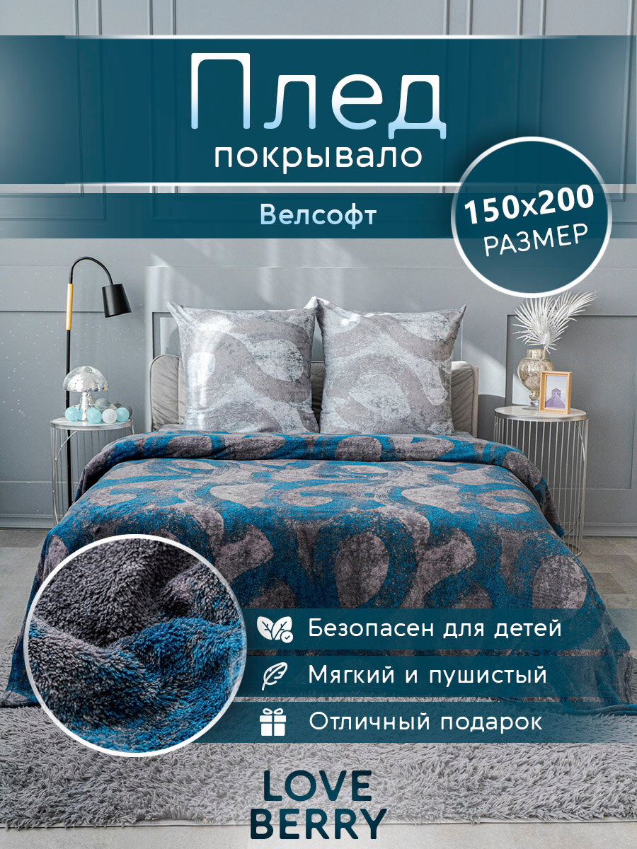 Плед 150х200 LOVEBERRY из велсофта, 1,5 спальный на кровать, для пикника информация: