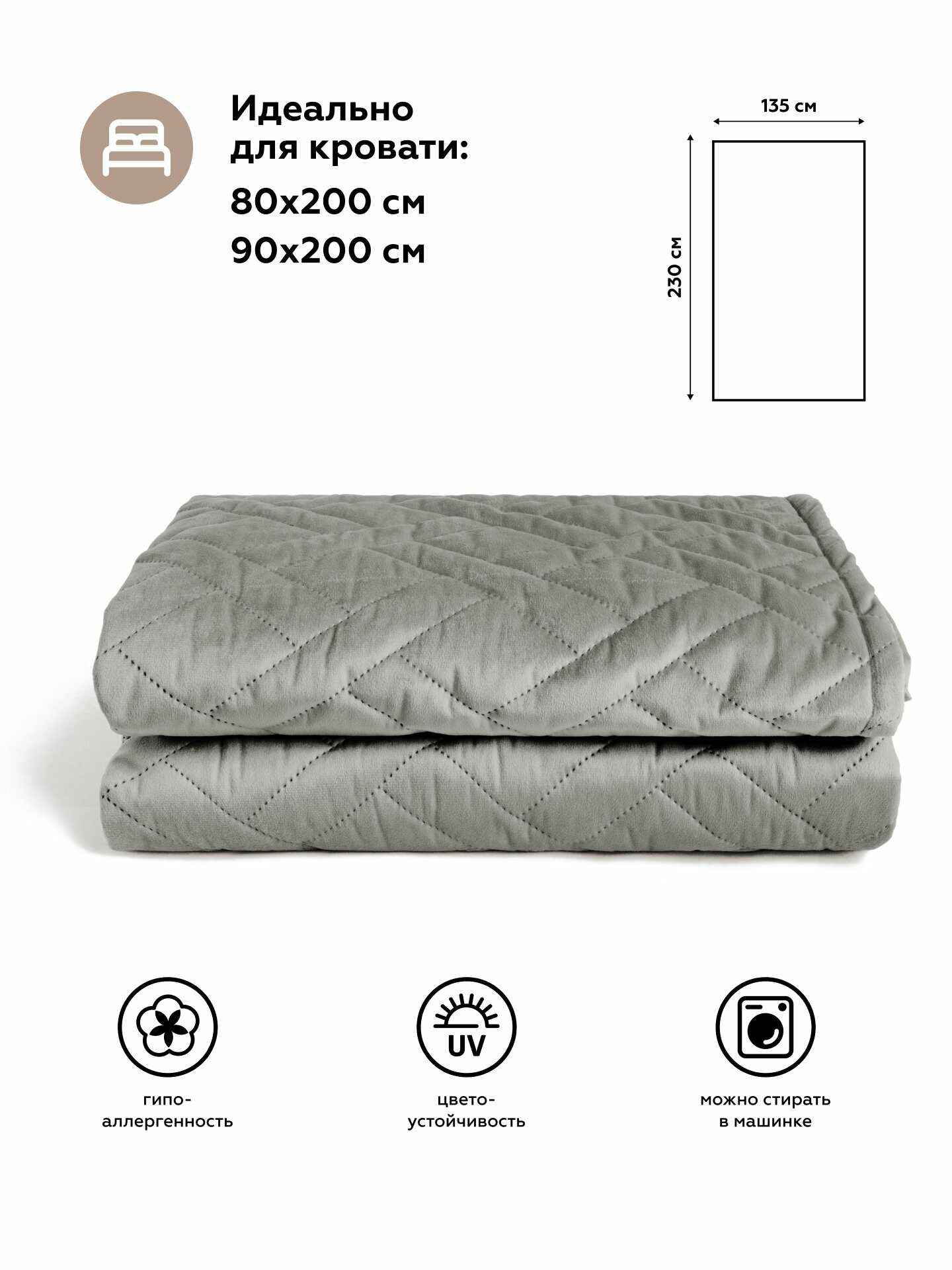 Покрывало на кровать MONO ADRIA SMOKE, накидка на диван велюр 135x230 информация: