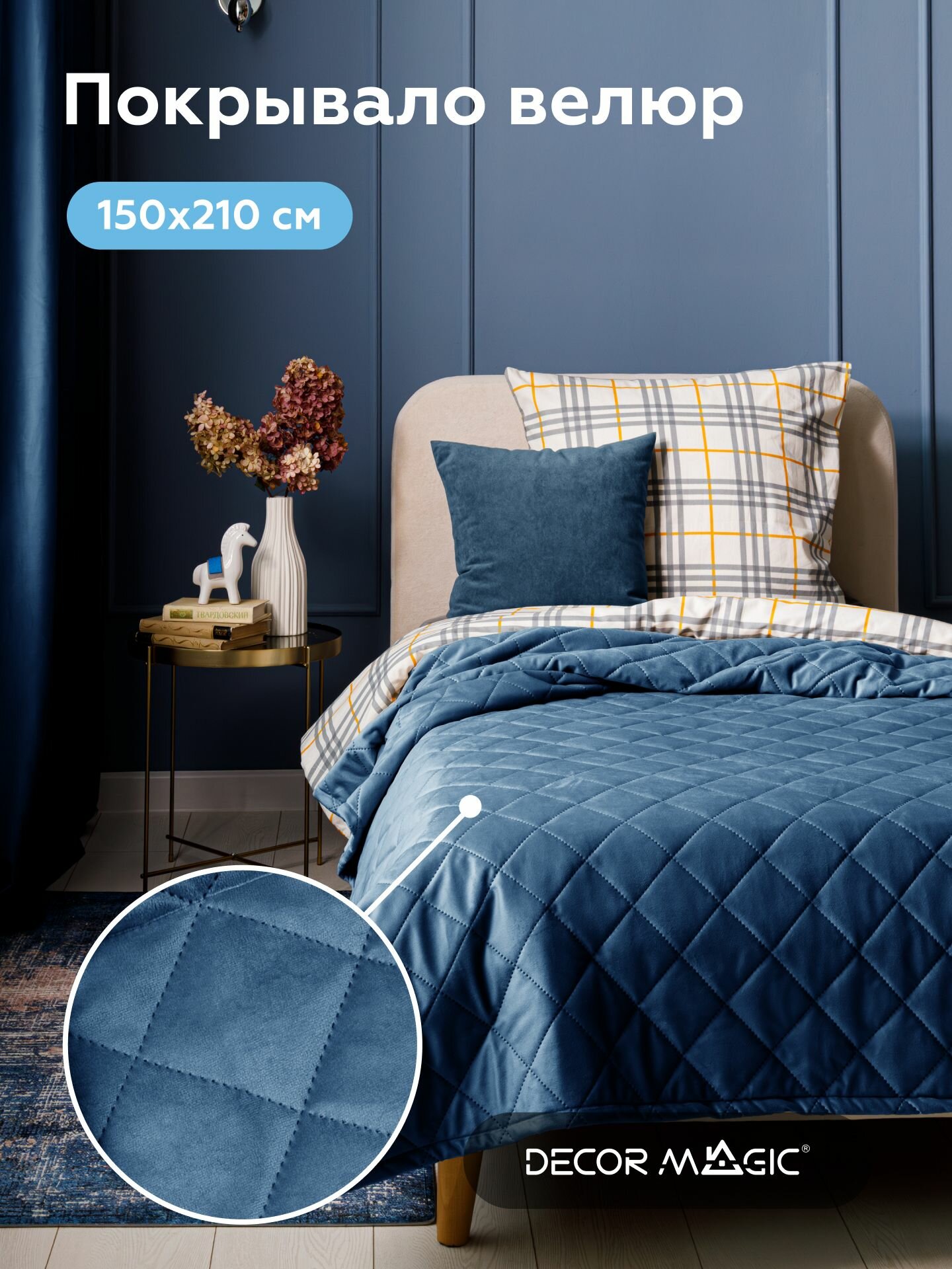 Отзывы на Покрывало на диван 150x210 см, стеганое, велюр LANA MONACO DENIM
