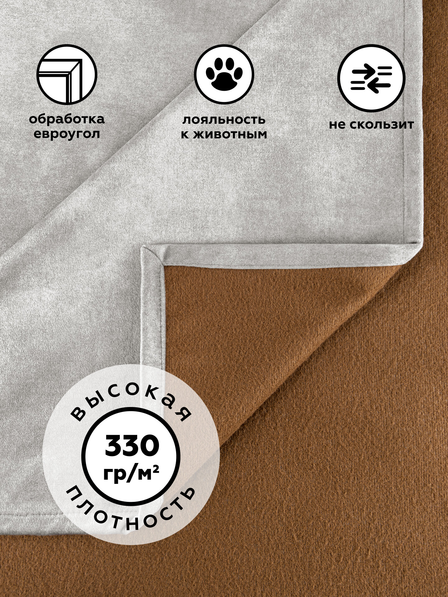 Покрывало на диван 135x230 см, велюр MONO GRETA GREY 2 206 ₽