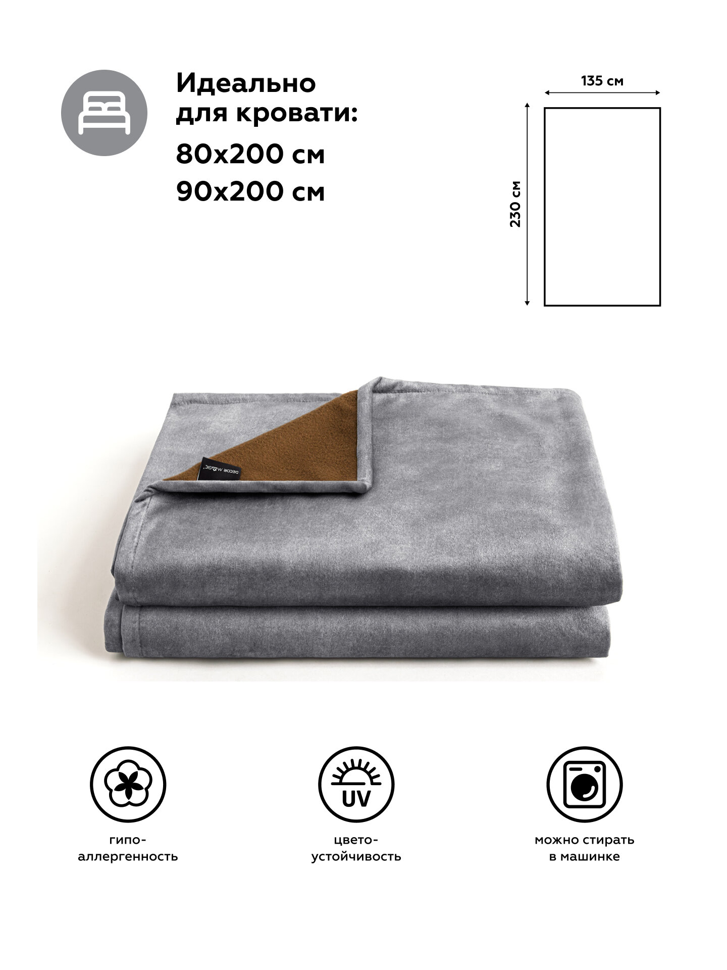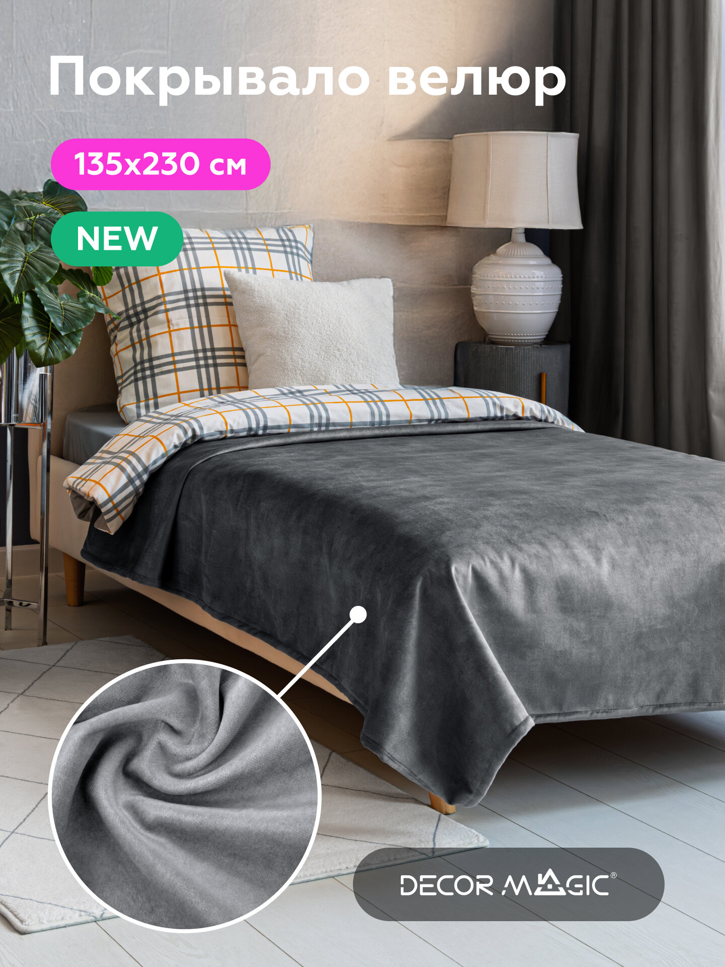 Покрывало на диван 135x230 см, велюр MONO GRETA GREY информация: