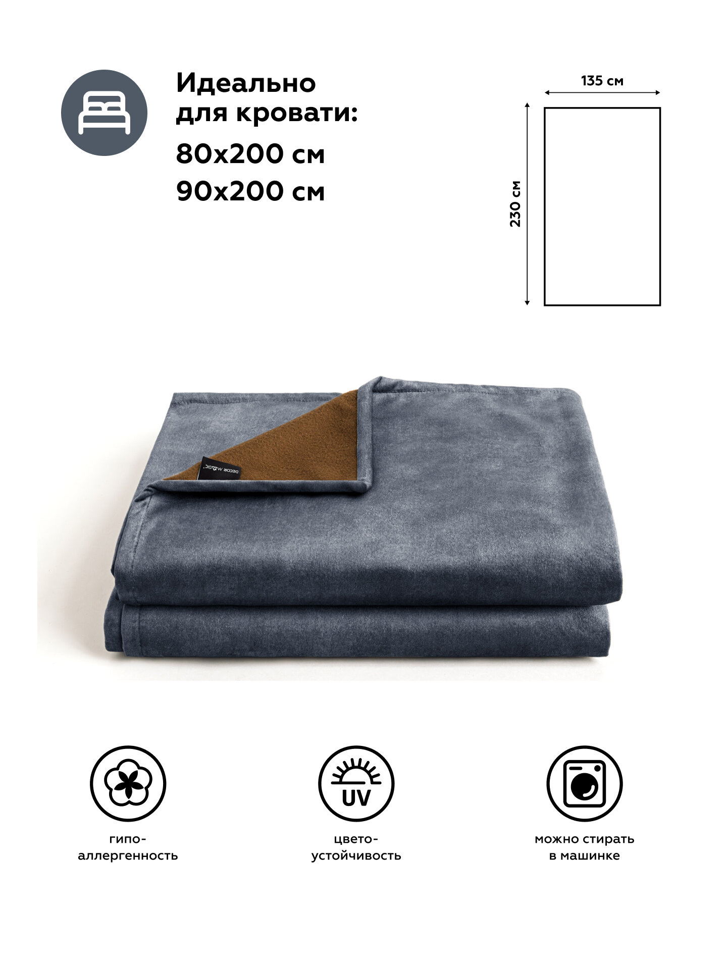 Покрывало на кровать или диван 135x230 см, велюр MONO GRETA OCEAN информация: