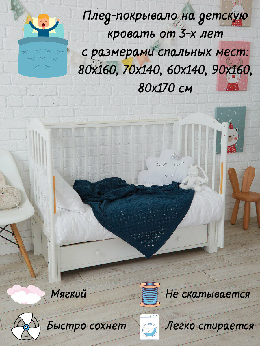 Плед-покрывало вязаный хлопковый на односпальную кровать детский , покрывало вязаное AlmaForHome July 160х90 см /темно-синий информация: