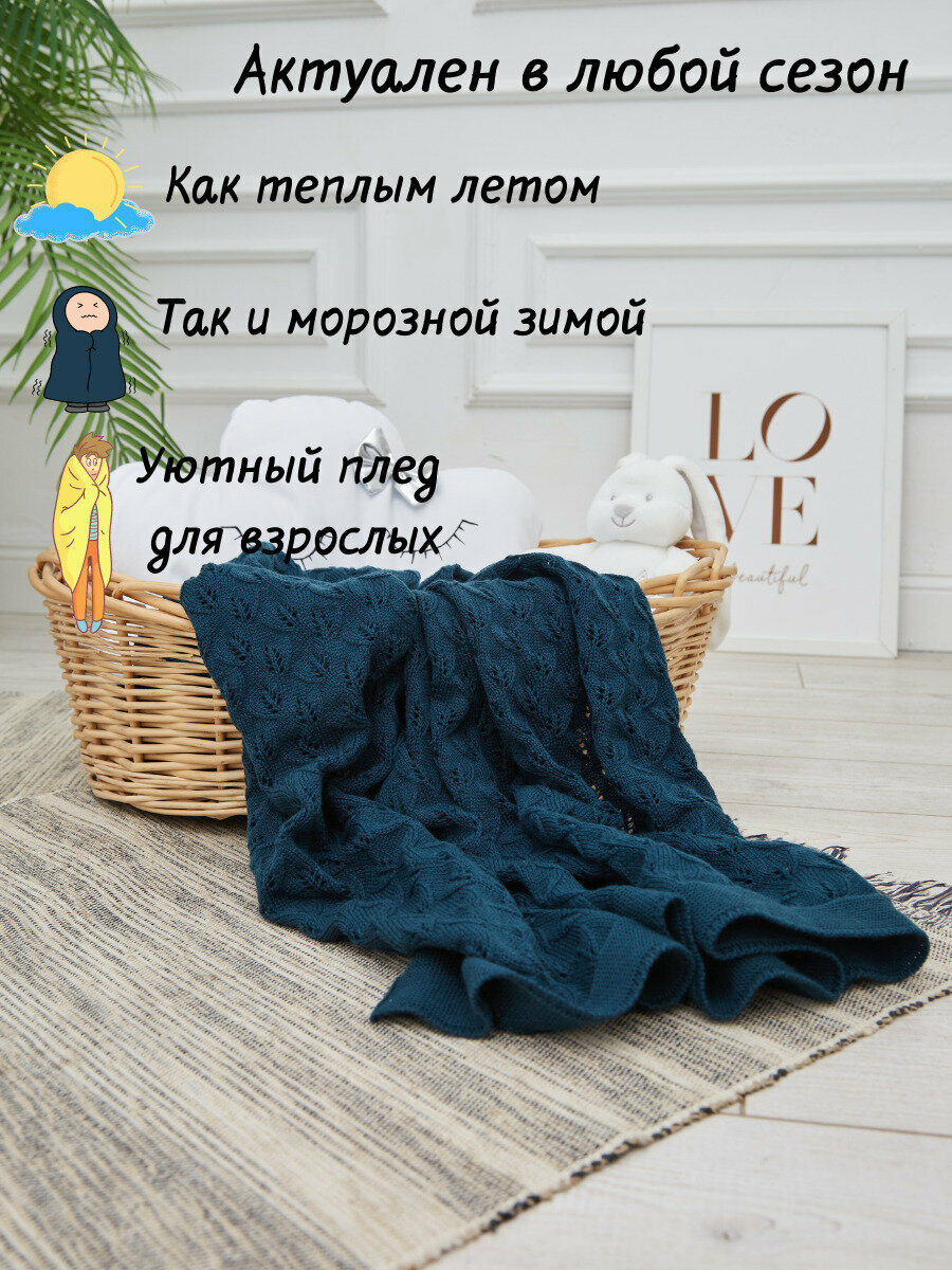 Отзывы на Плед-покрывало вязаный хлопковый на односпальную кровать детский , покрывало вязаное AlmaForHome July 160х90 см /темно-синий