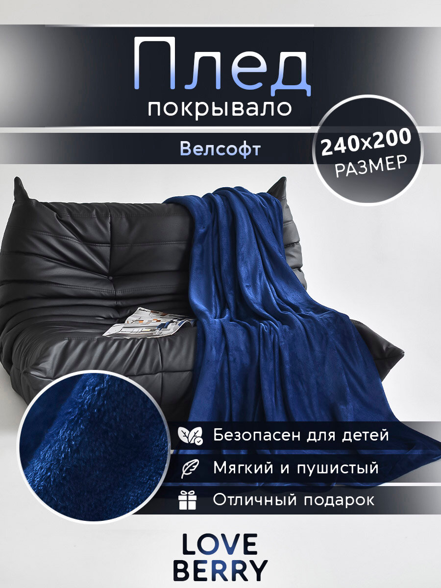 Отзывы на Плед покрывало 240х200 LOVEBERRY, Евро-макси из велсофта, однотонное, цвет синий