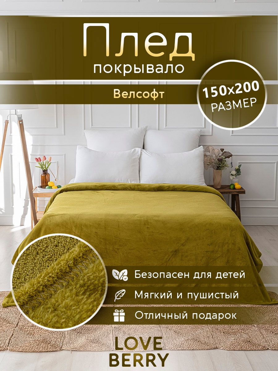 Плед 150х200 LOVEBERRY из велсофта на кровать, слива, подарок маме 1 001 ₽